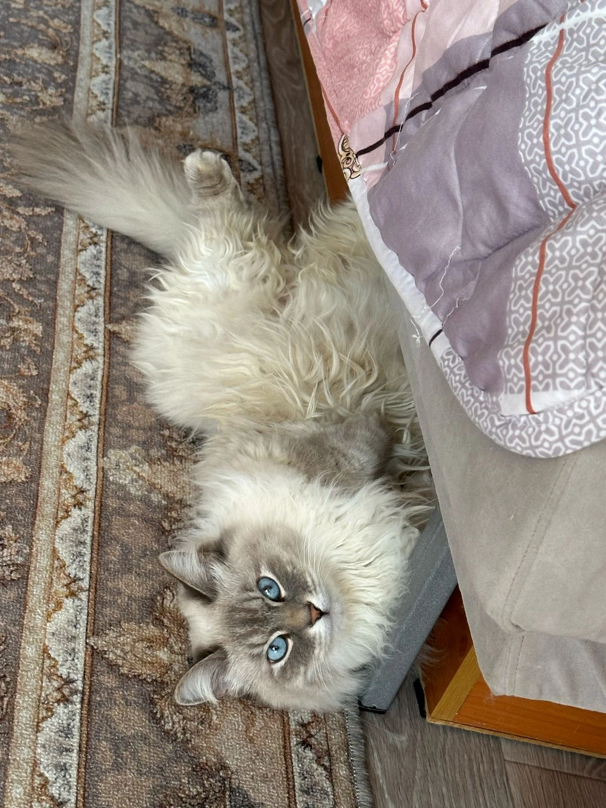 Наш месяцев до 10 был проглотом, я думала шпиц не чувствует сытости, но Крис его переплюнул. Думала, что только нам попался вечно голодный кот, которого сложно прокормить. К году уже поспокойнее, но если с вечера не наелся, то тревожный подъем в 6 утра обеспечен всем. Но как не влюбиться в эти голубые глаза.