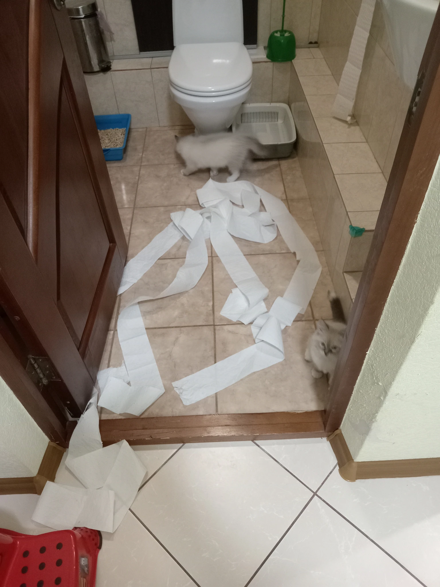 С этими товарищами глаз да глаз. Недавно поняла, что кто то из них неравнодушен к туалетной бумаге