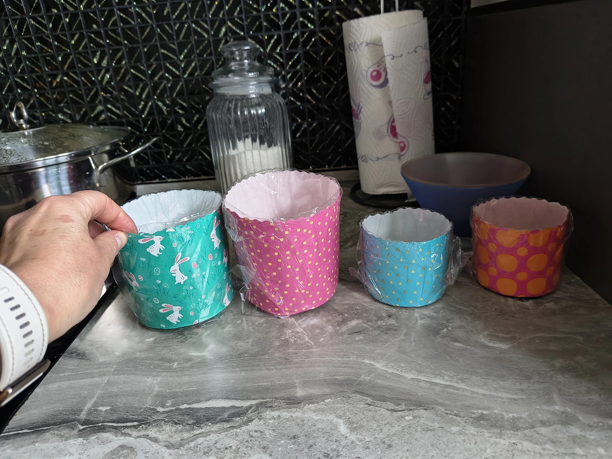 Я бумажные разных объемов покупаю. Я люблю маленькие куличи, чтоб не оставалось. Разрезали и съели