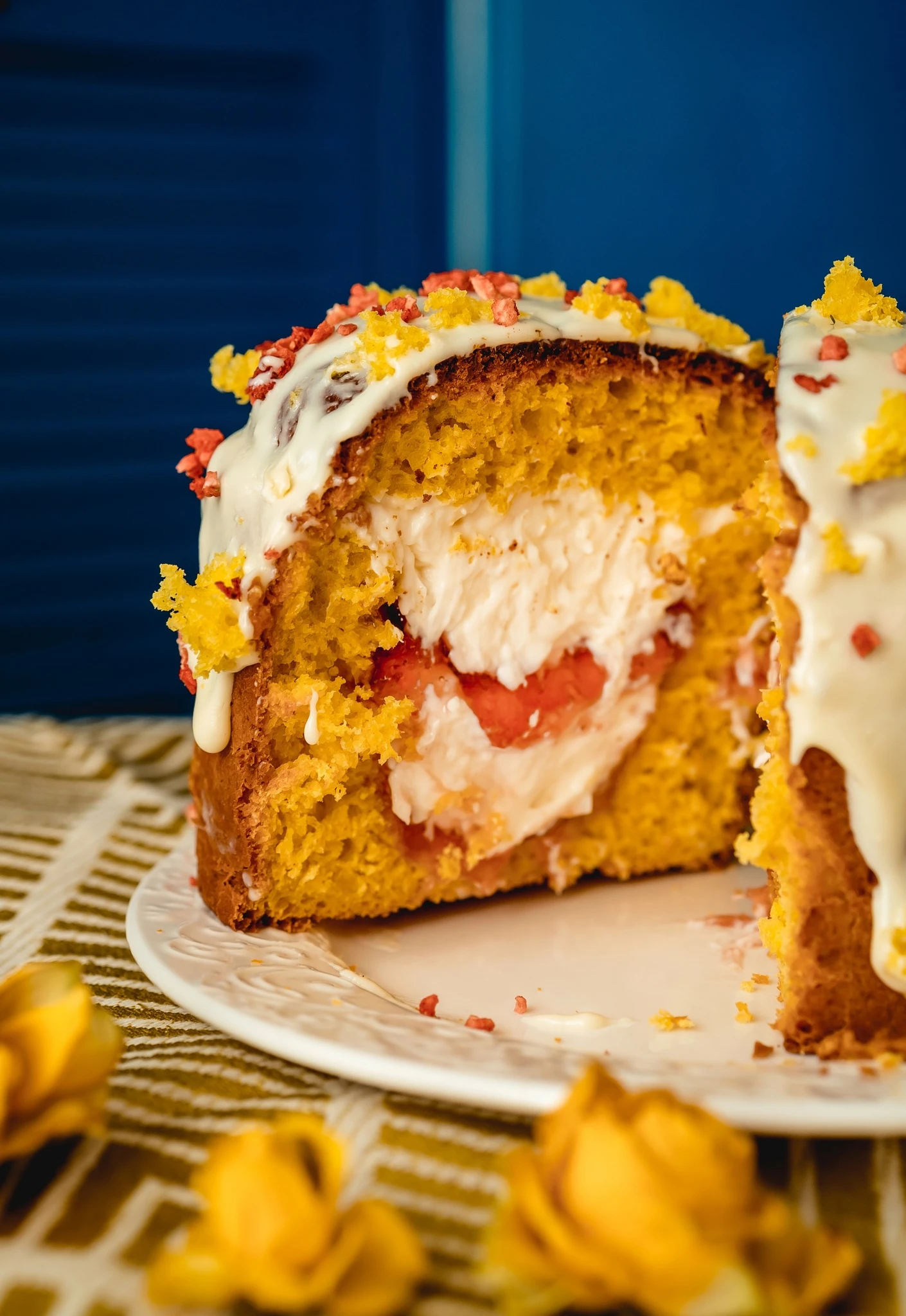 Пасхальный кулич с творожно-ягодной начинкой и сгущённой глазурью