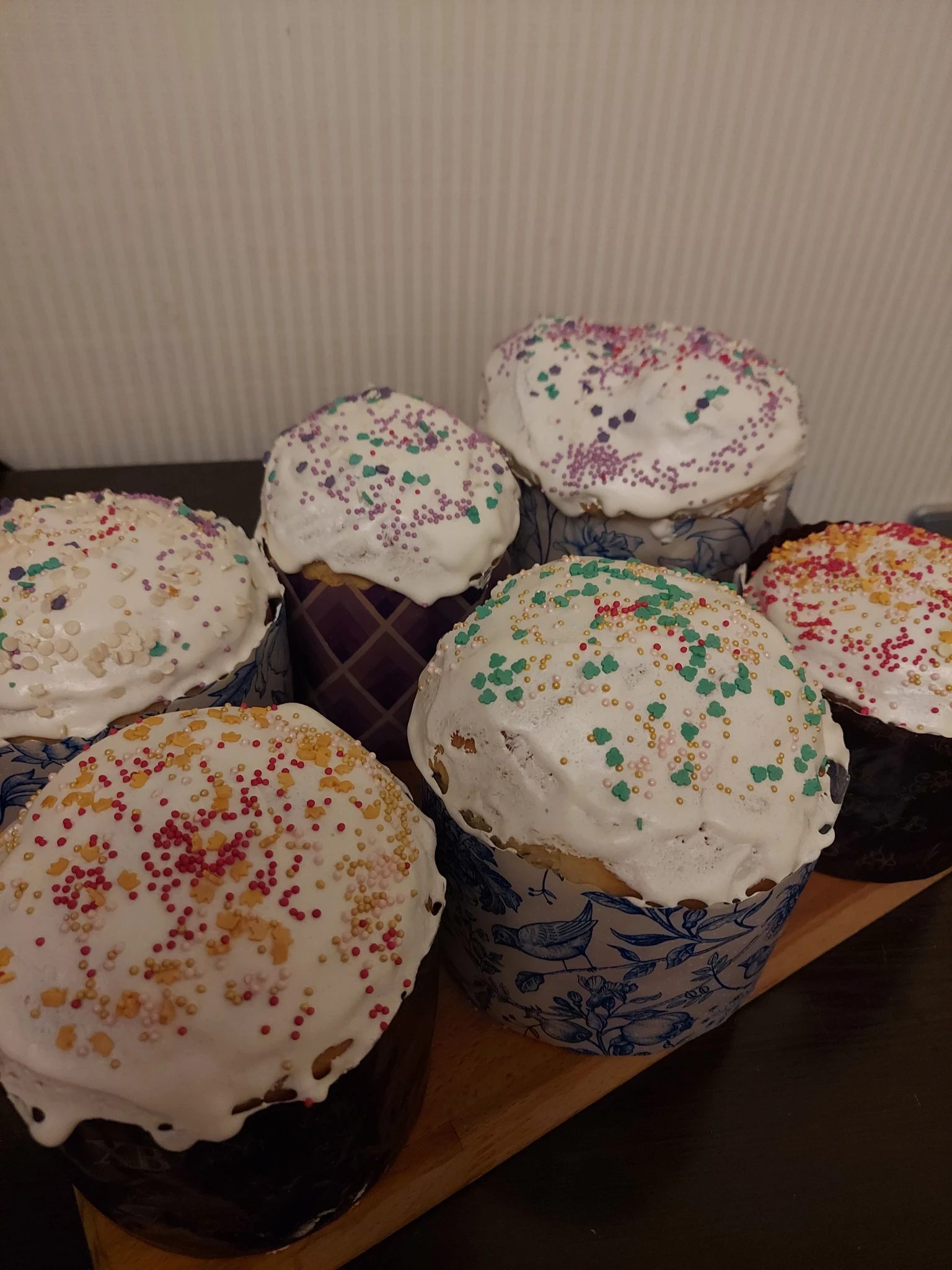Но получается очень вкусное тесто. Вот мои куличи прошлогодние.