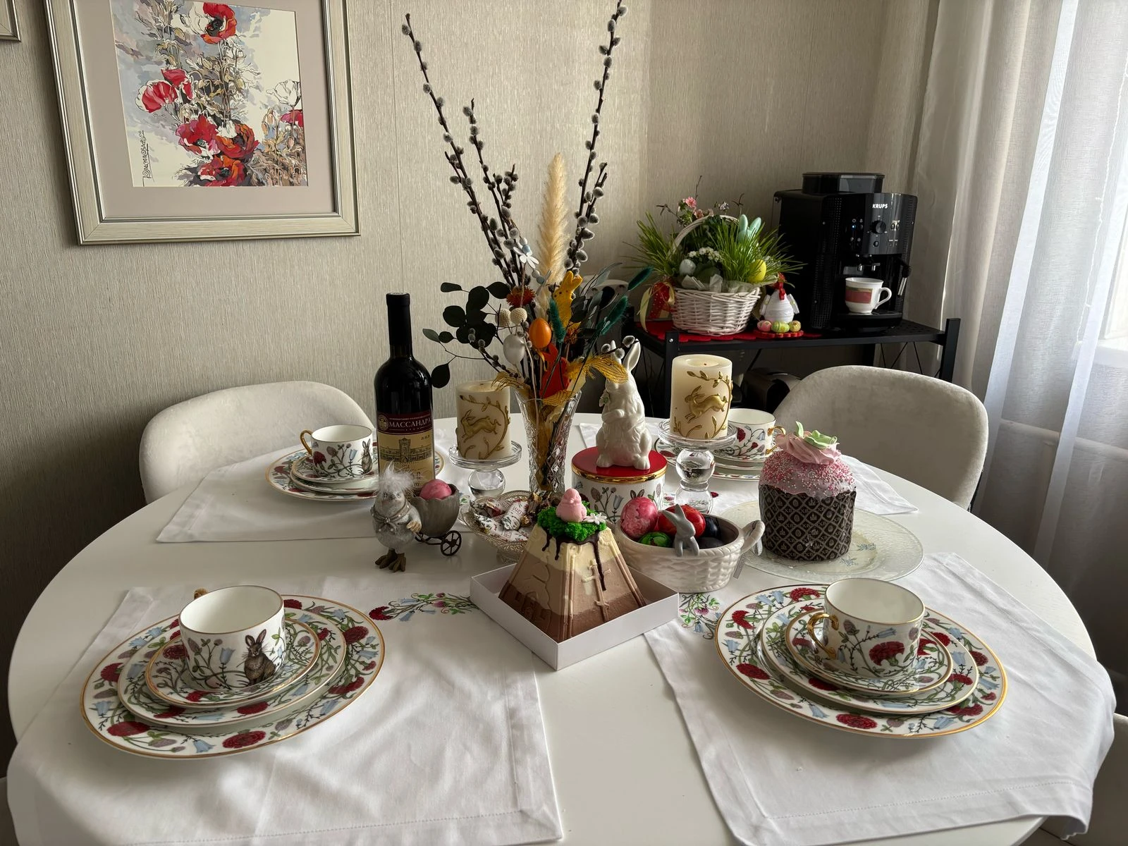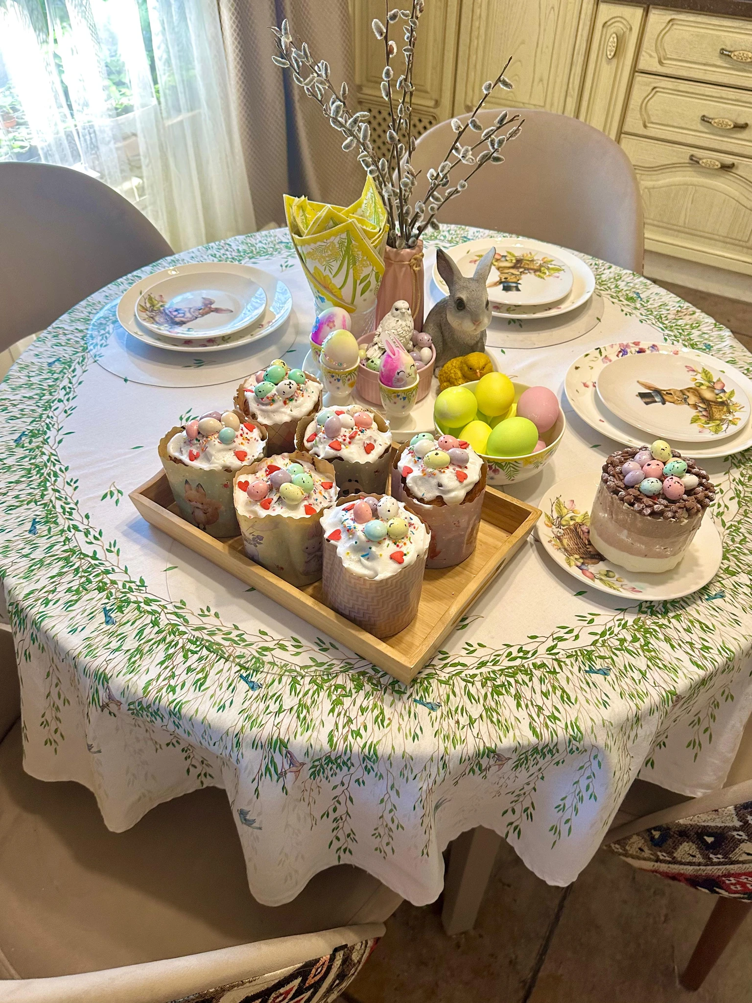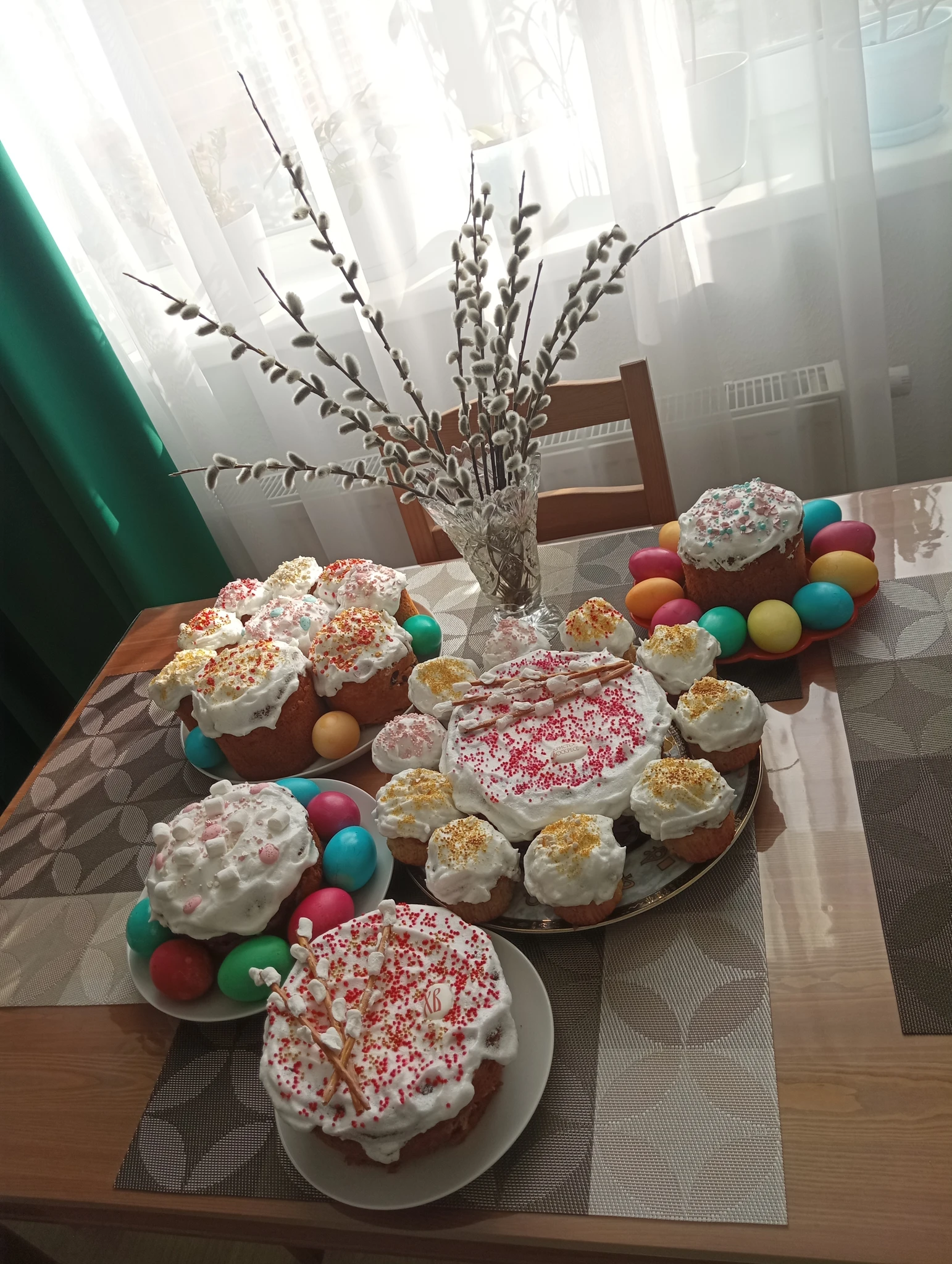 У нас яйца и пирожки, куличи делать не умею. У всех очень красивые и душевные столы.