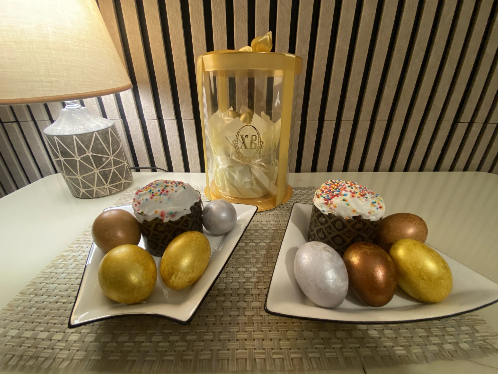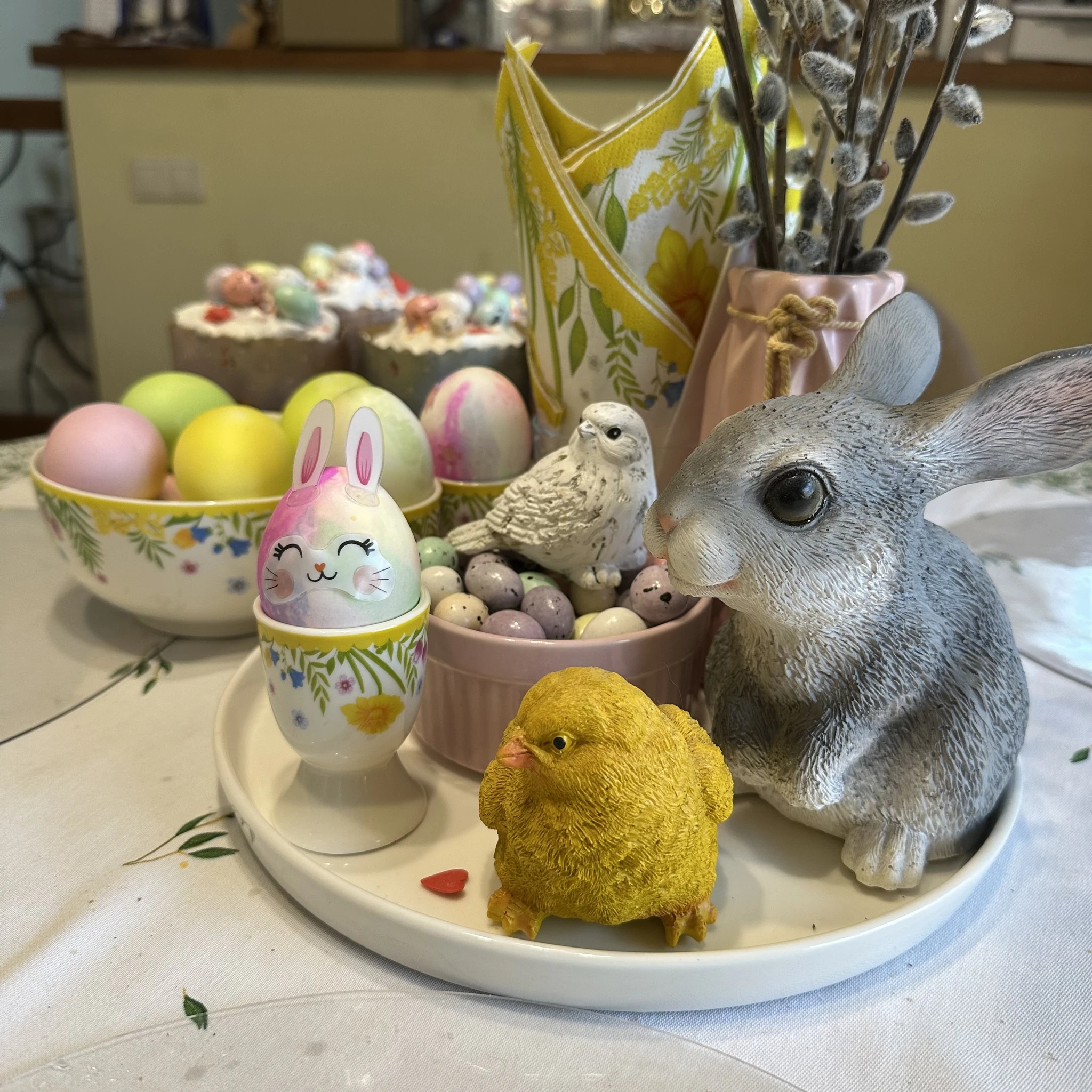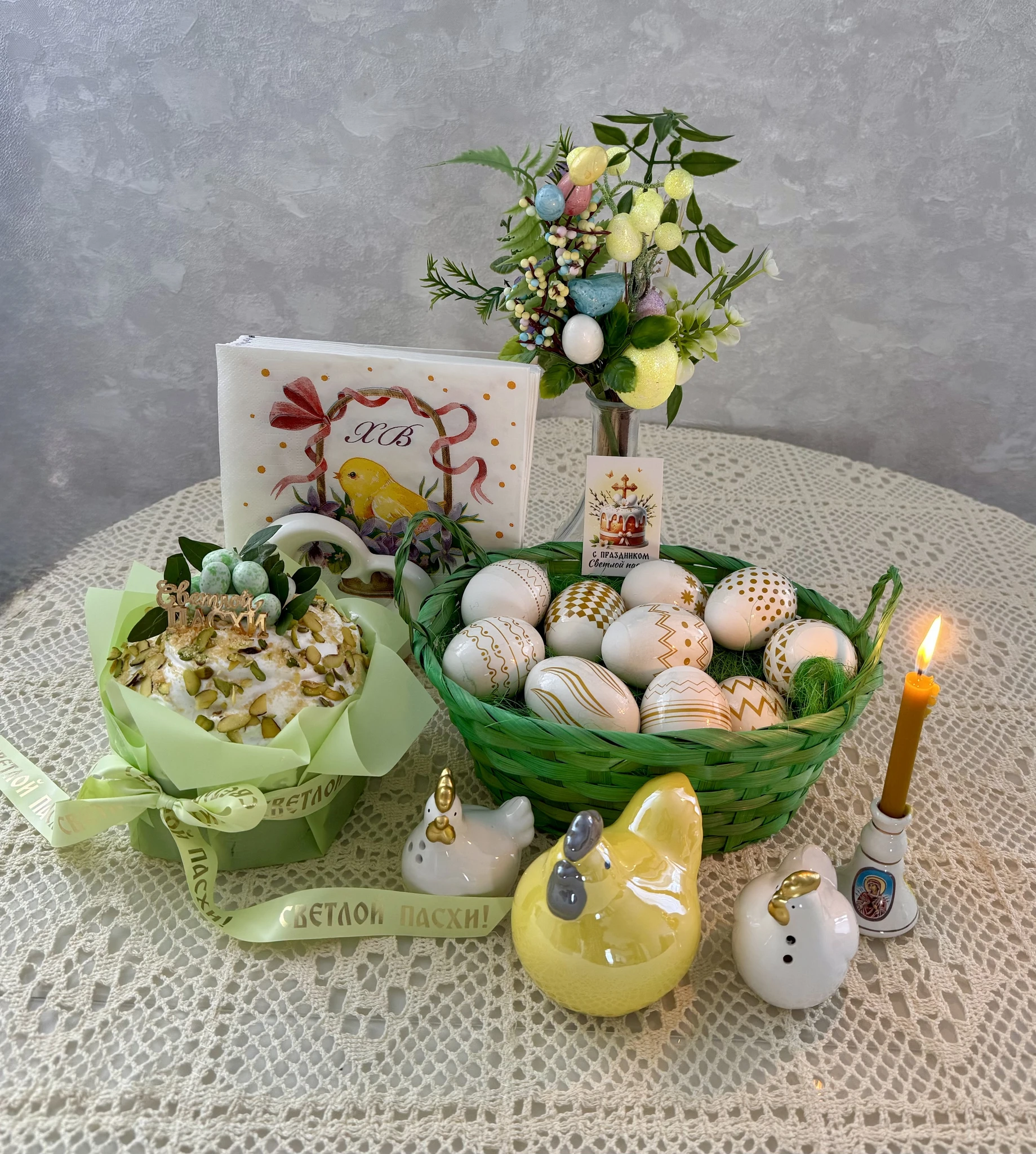 У нас яйца и пирожки, куличи делать не умею. У всех очень красивые и душевные столы.
