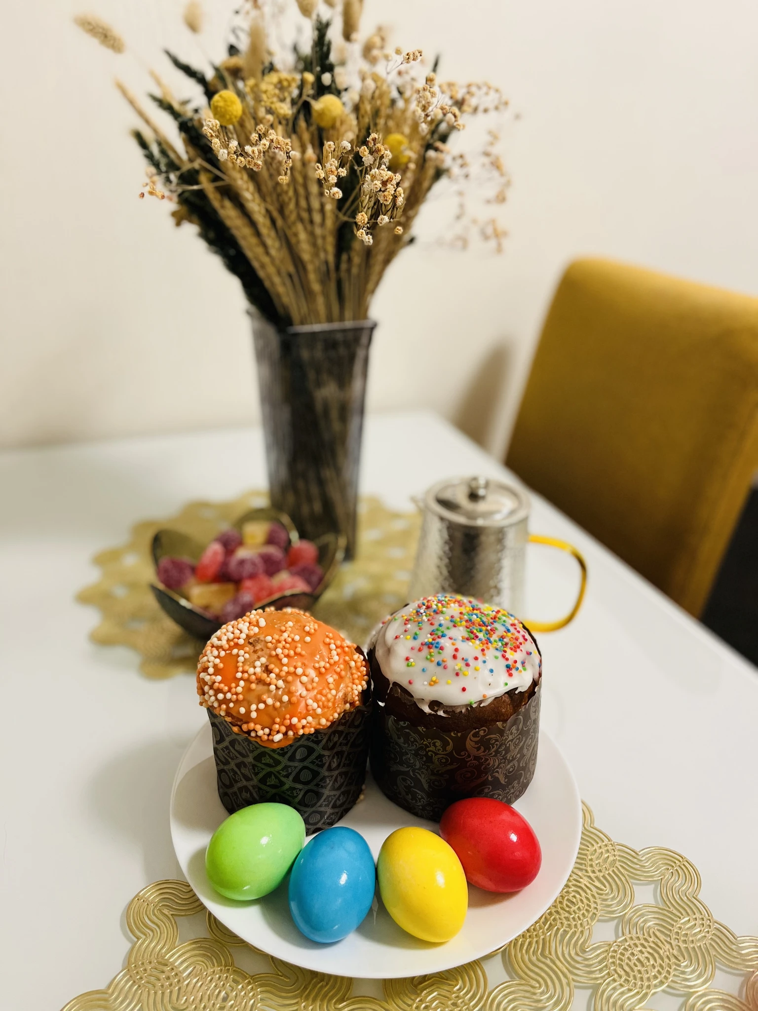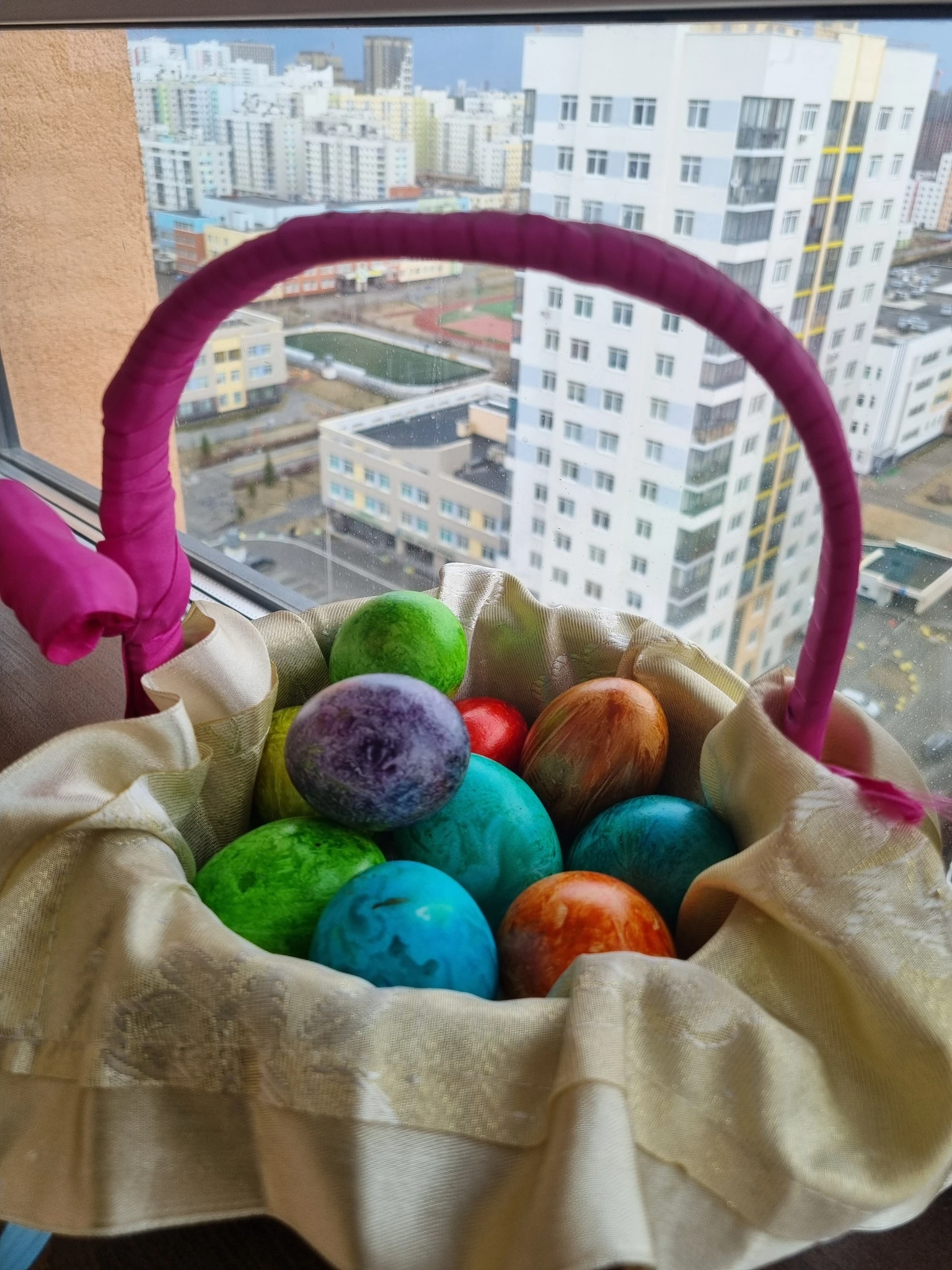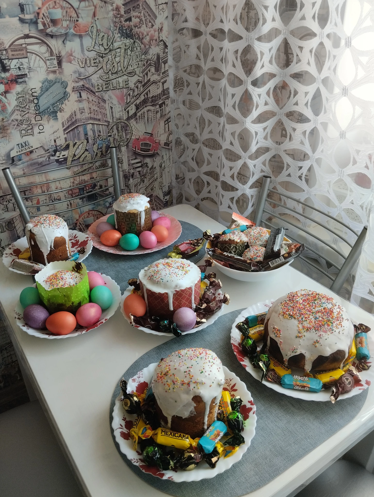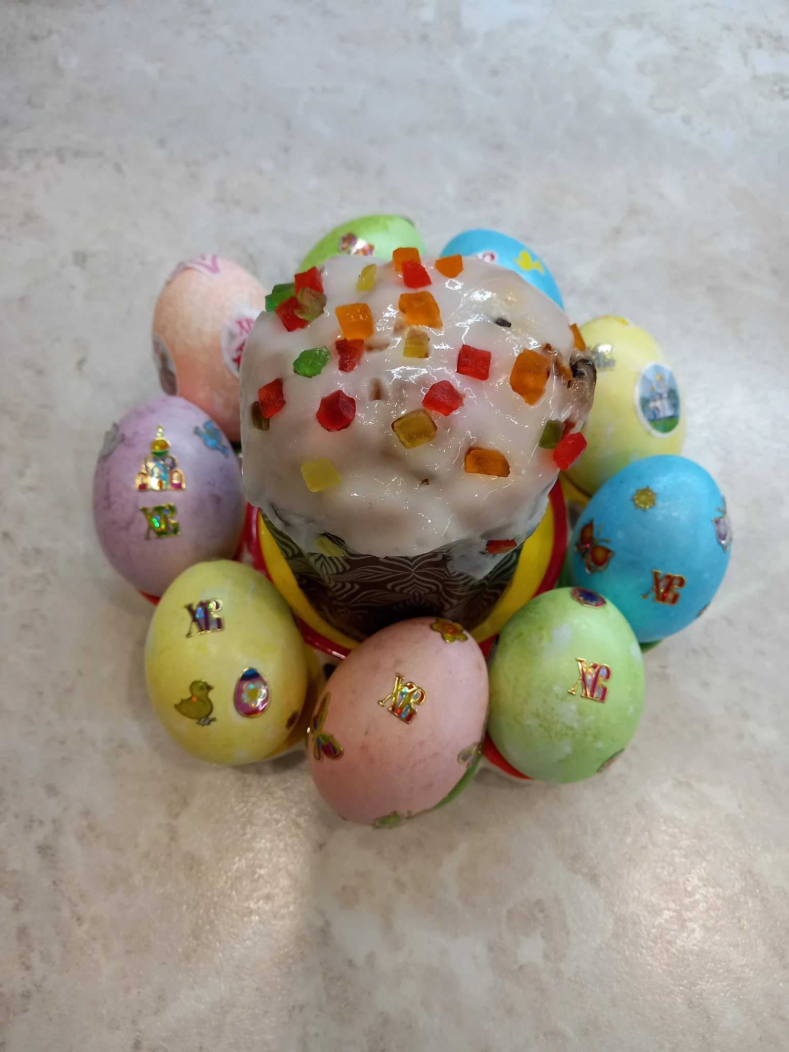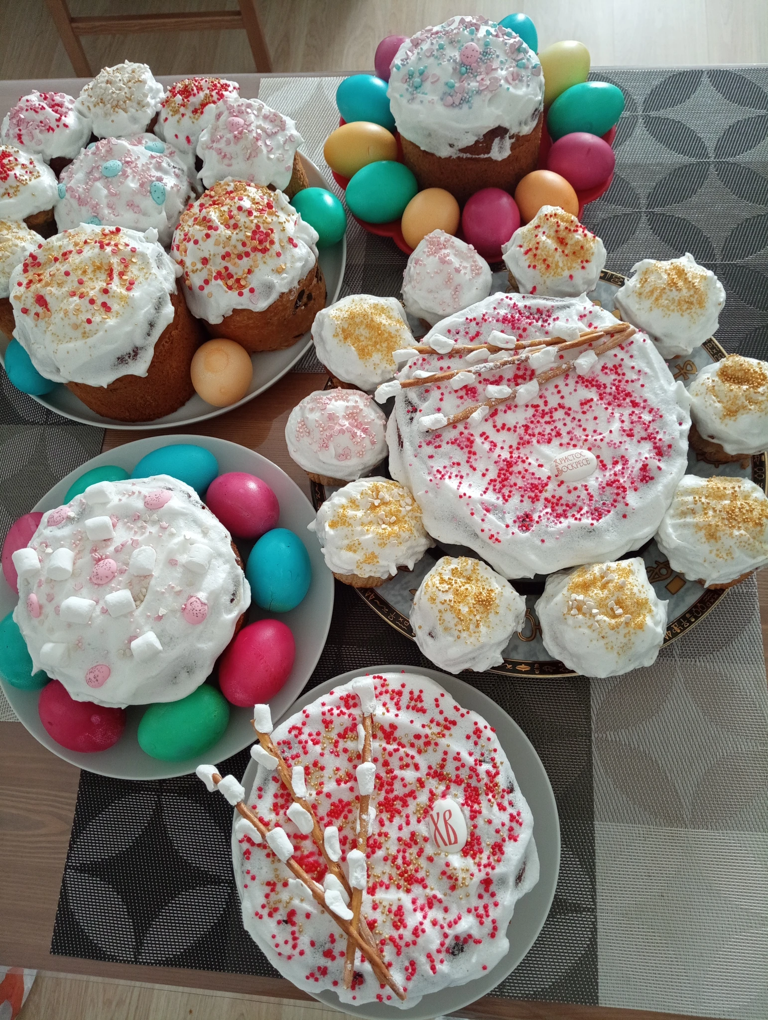 С ребёнком вчера красили , куличи купили ,сама не пеку