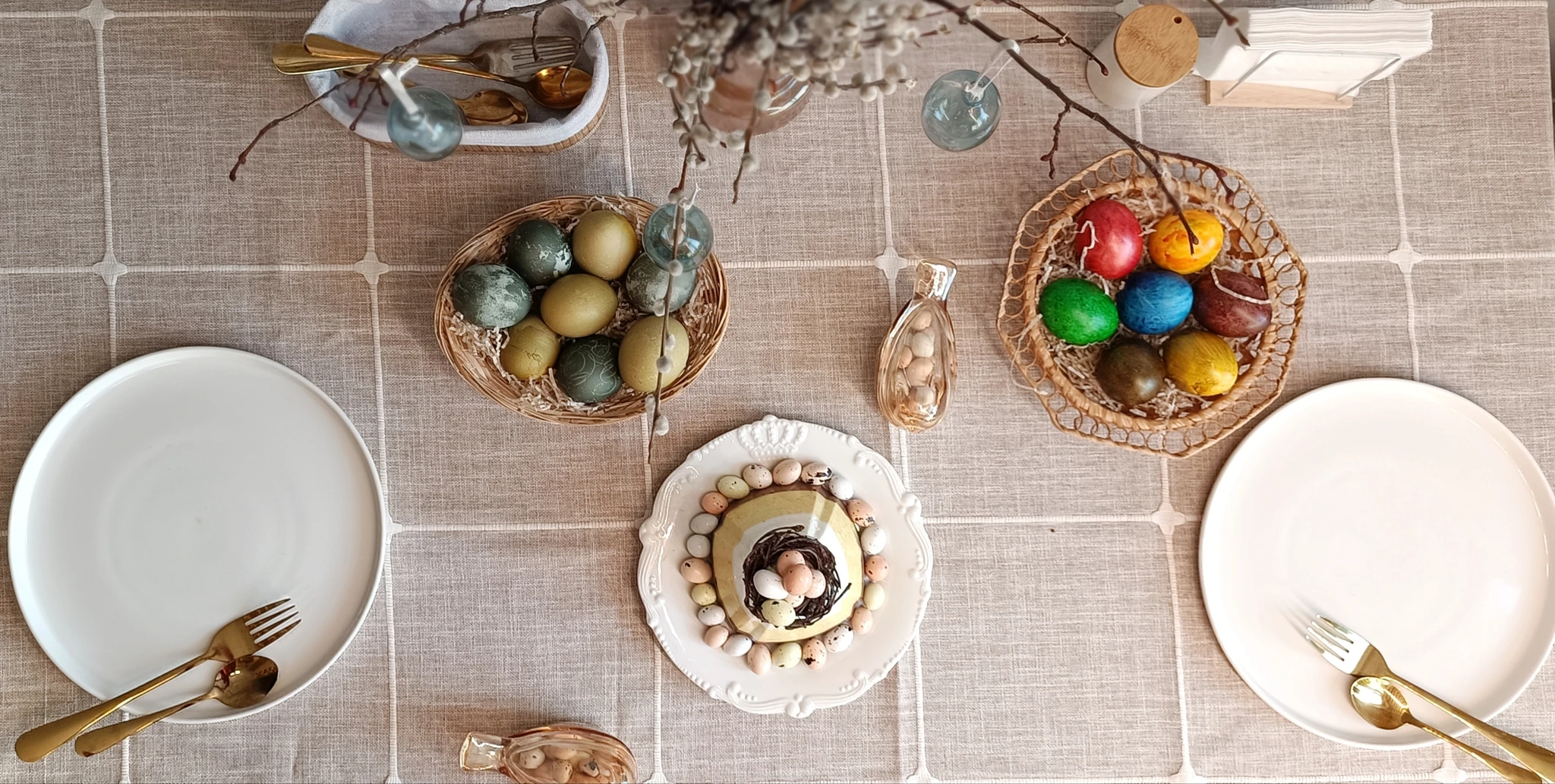 Ваш стол напомнил мне детство) классическое украшение, яйца и конфеты по кругу)