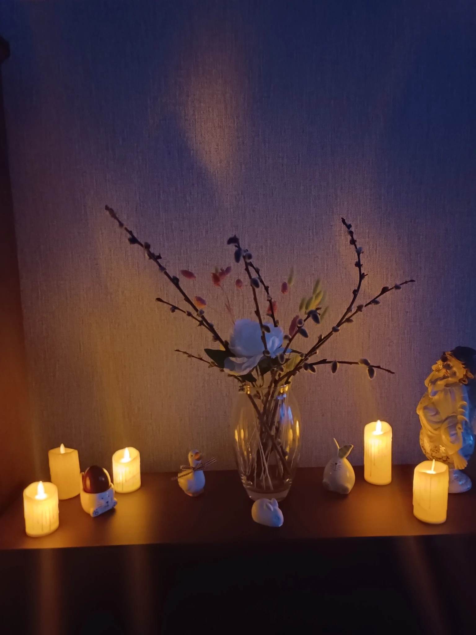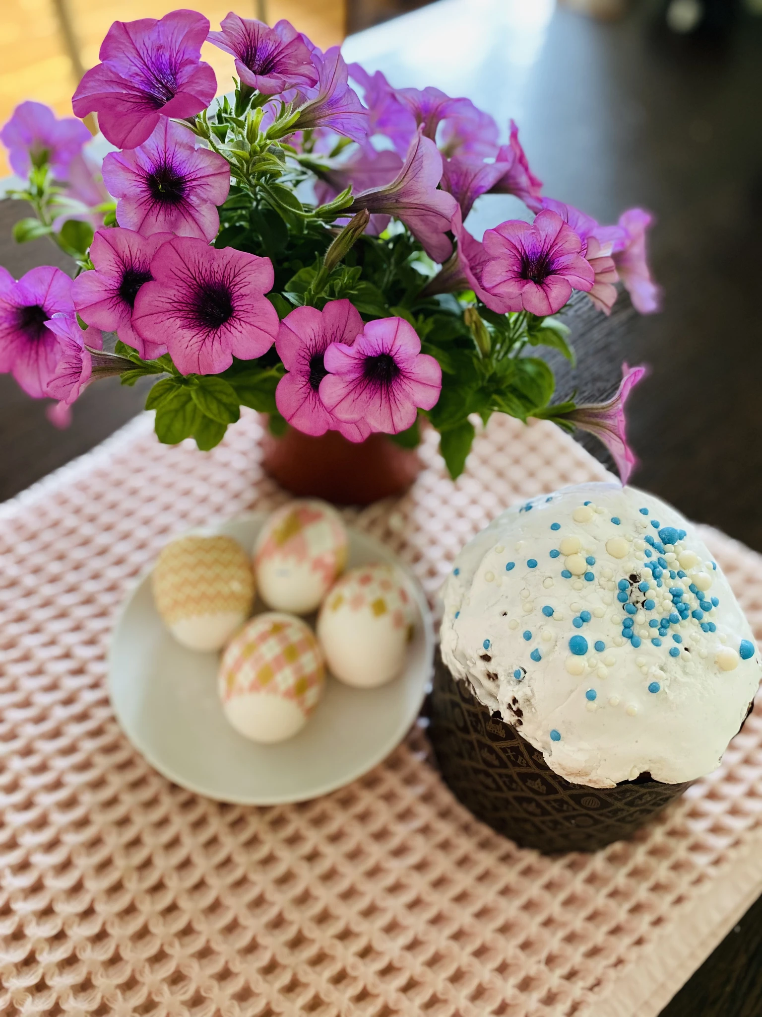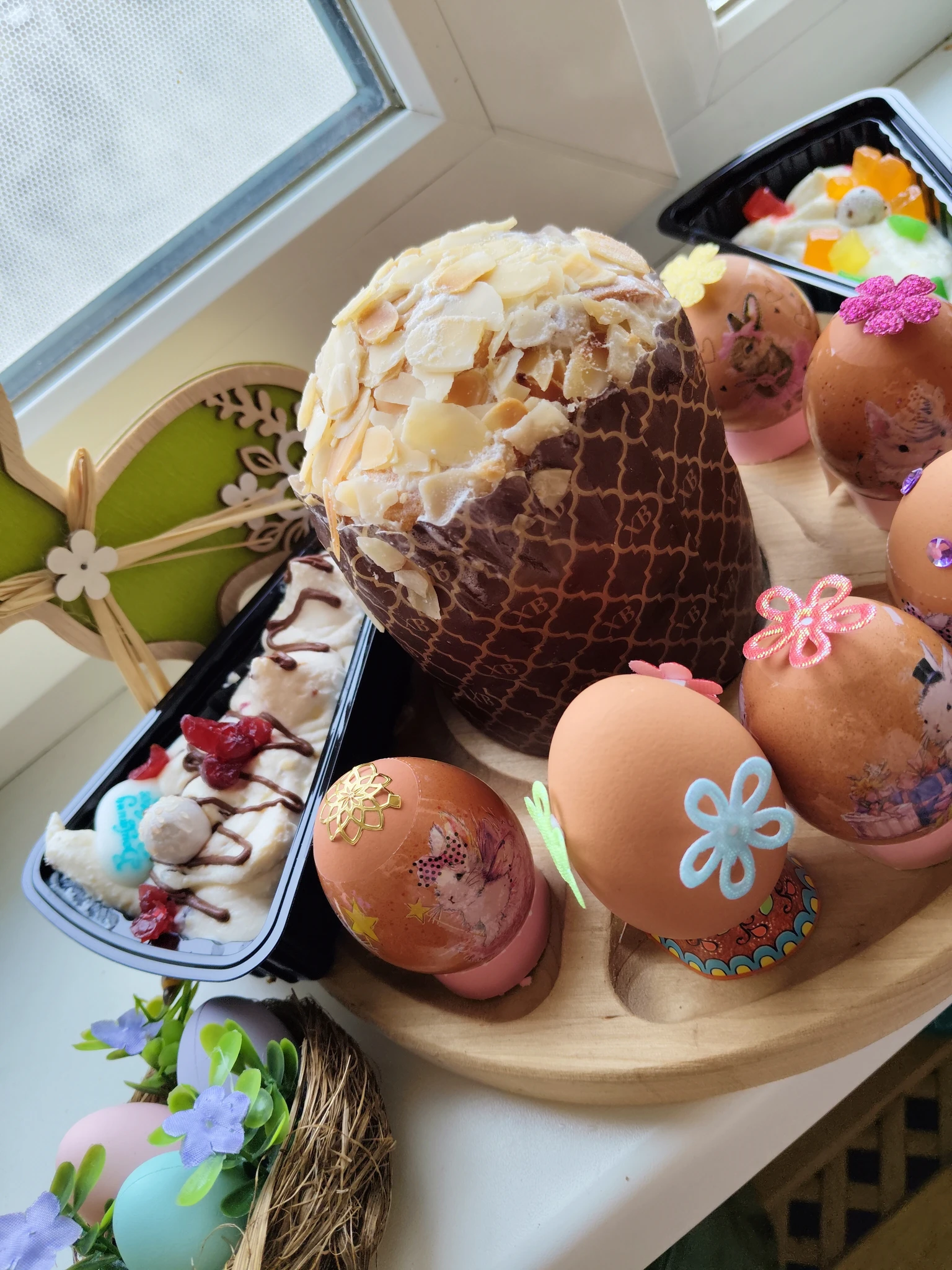 Не хотела ничего в этом году делать, но в итоге и куличи, и пасха и даже гнезда наделала. Украшения тоже мои