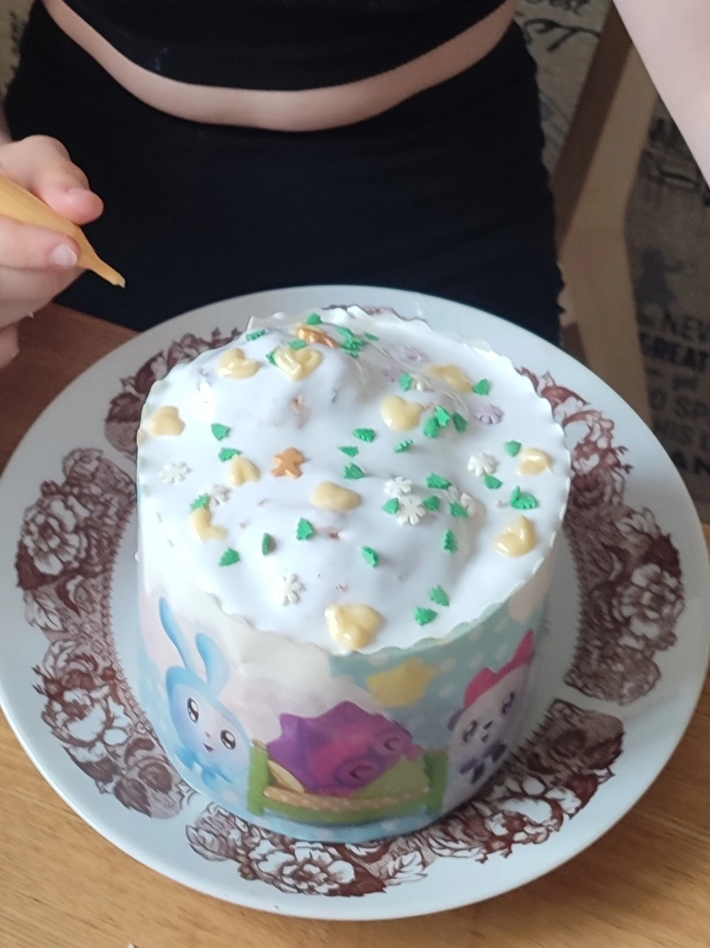 Я пекла, с утра вместе украшали. Потом пили чай. Вобщем мало осталось уже