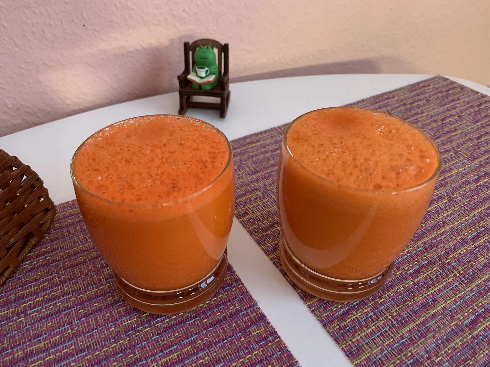 У нас сегодня по простому - вареная картошка, селёдка и салат из свежих овощей. Перед ужином сок морковный сделала.
