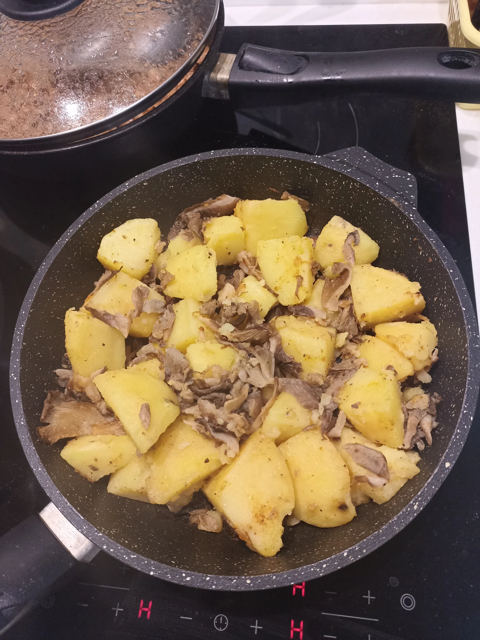 Картошка с вешенками и без вешенок со сливочным маслом.