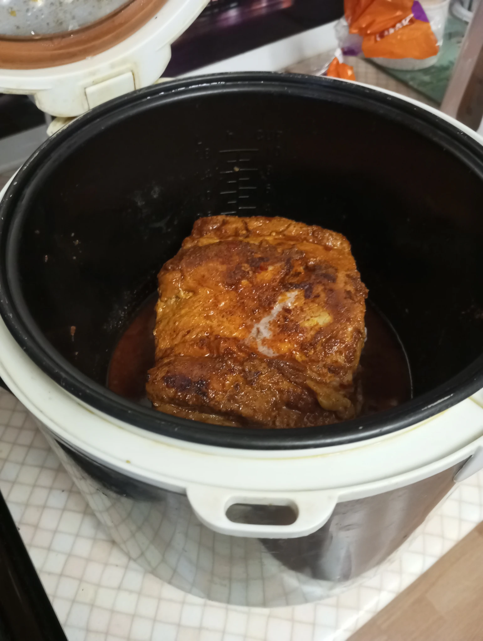 Ну и у нас соответствующее настроение от погоды. Решили себя порадовать на даче.Мясо запекаю в мультиварке на режиме выпечка. Получается как в печи, тает просто с хрустящей корочкой.