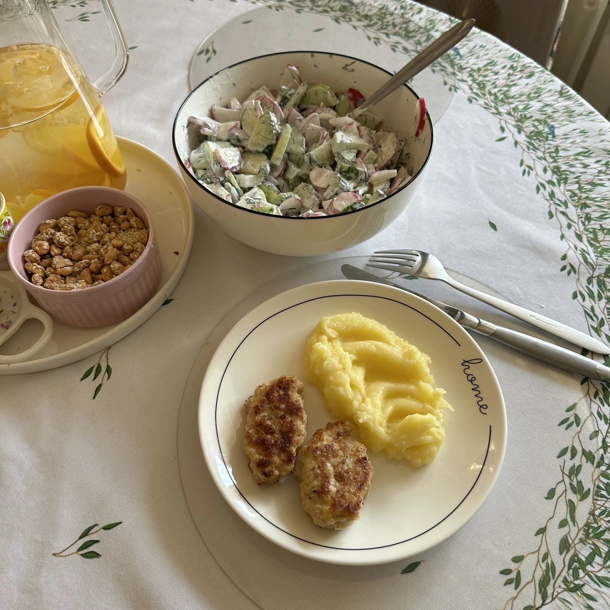 Нежнейшие куриные рубленные котлеты , пюрешка и салат с редиской. Просто и божественно вкусно