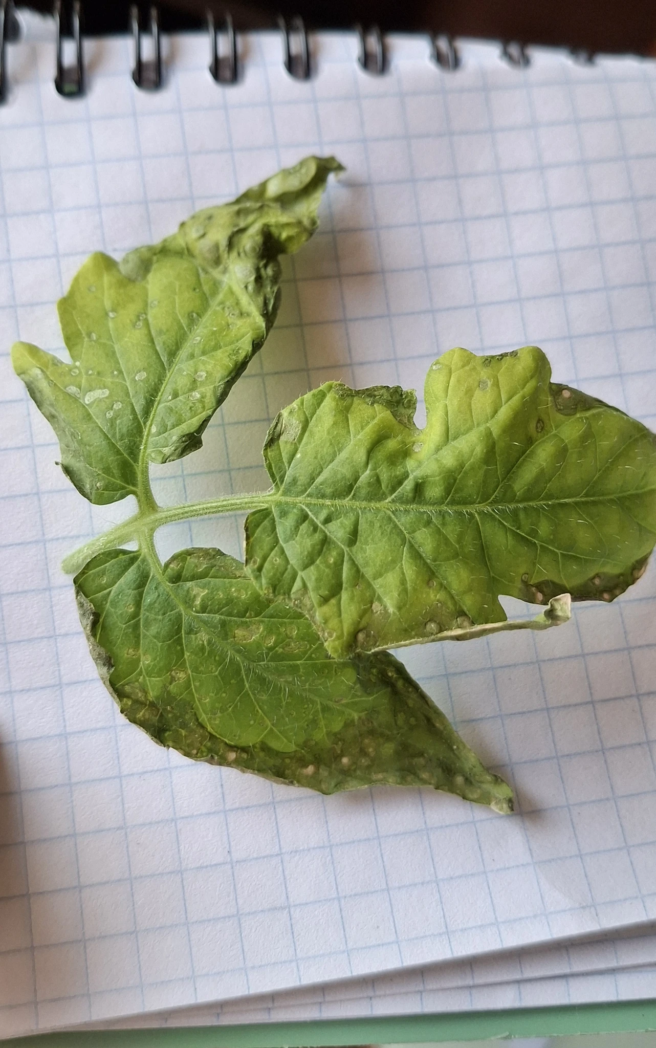 Подскажите, кто так кушает листья у томатов? Никого летающего, прыгающего не видно