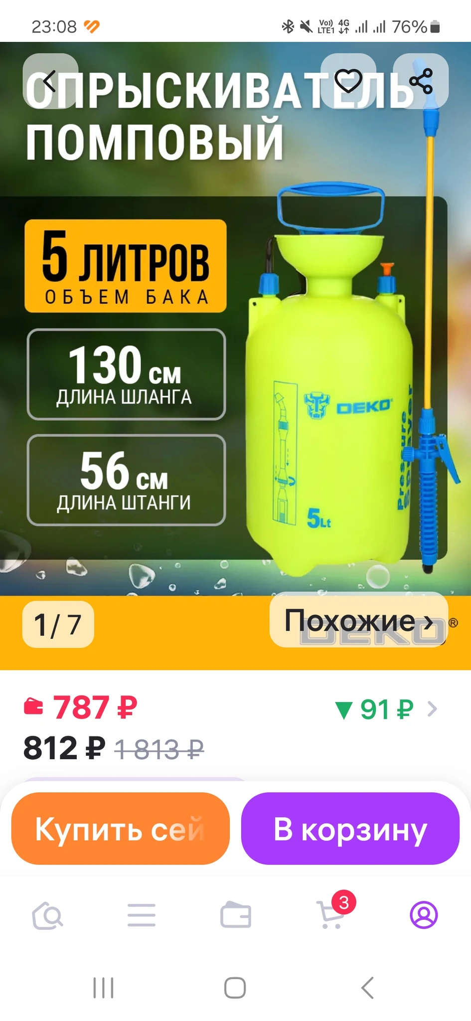 Такой на вб взяла, в работе не был в деревне ещё, но дома, рассаду, всю опрыскала, домочадцев и собаку тоже))) мне нужна была штанга длинная, деревья растут...