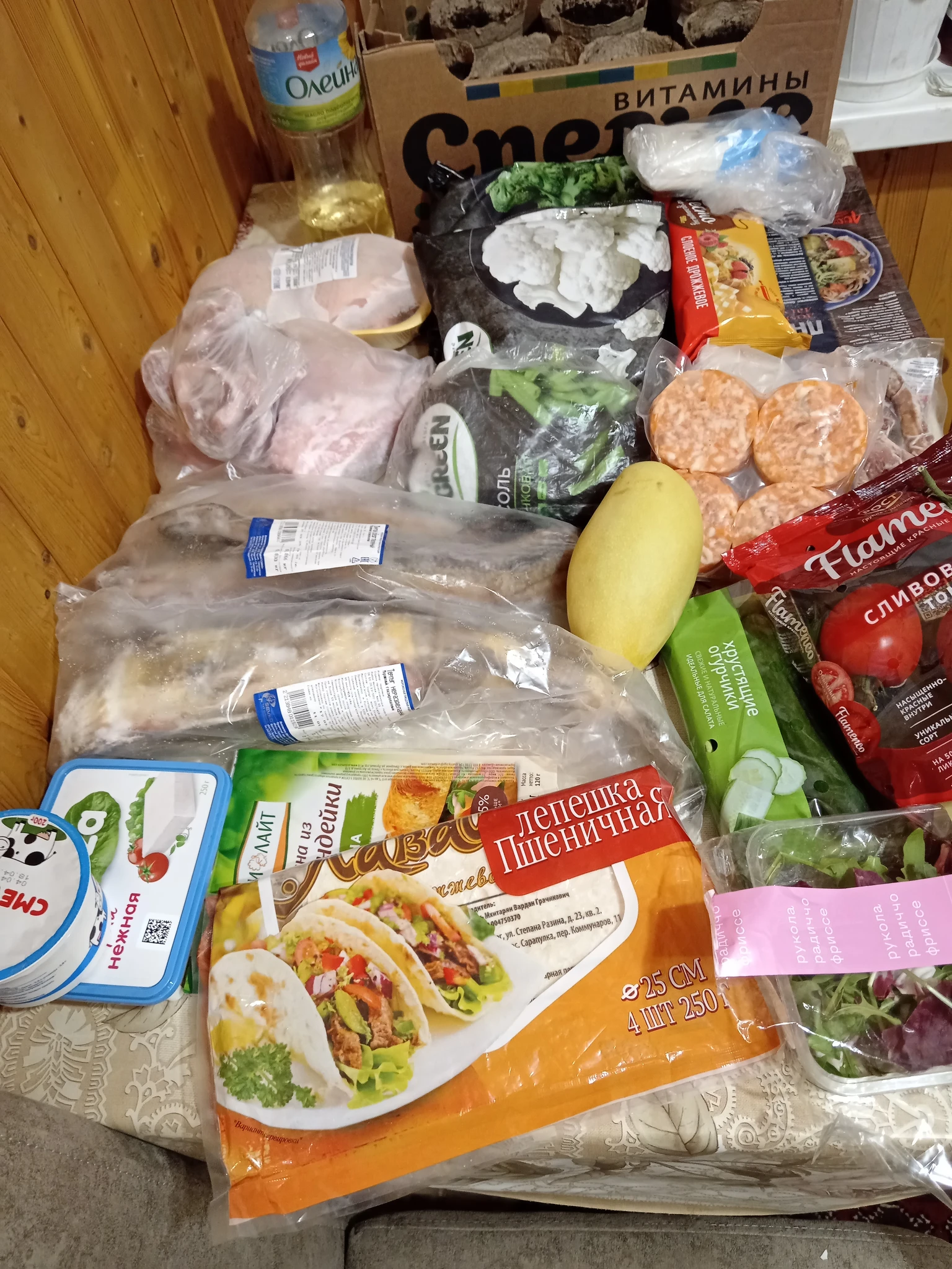 Аноним 777: ( что то уже сьедено), что было из круп, макарон. Остаток до конца месяца 9200. Есть минтай три шт, терпуг 1, мясо корейка на кости два куска больших, Греча макароны и так по мелочи. Фото того что есть прилагаю