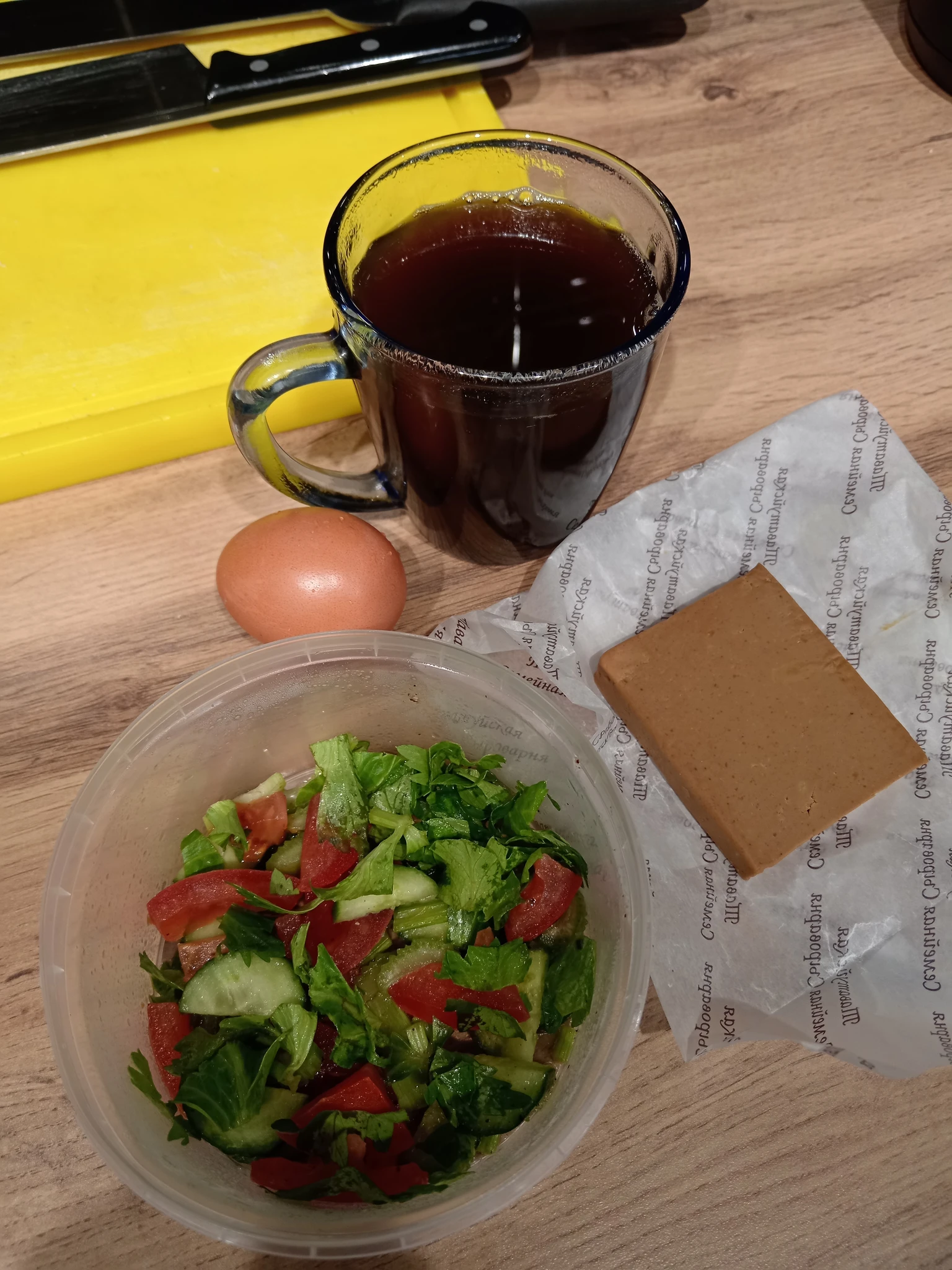 С утра жарила котлеты рыбные 4 шт и рис сварила, взяла себе на обед 2 шт, муж на завтрак рис и котлета и одна ещё на вечер ему. А это мой завтрак