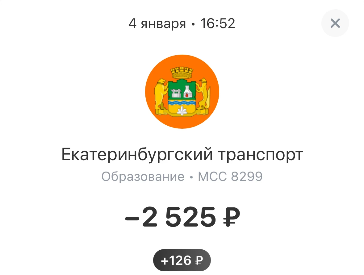 В Тинькофф в декабре и январе тоже как образование выходило. Но с названием Екатеринбургский транспорт