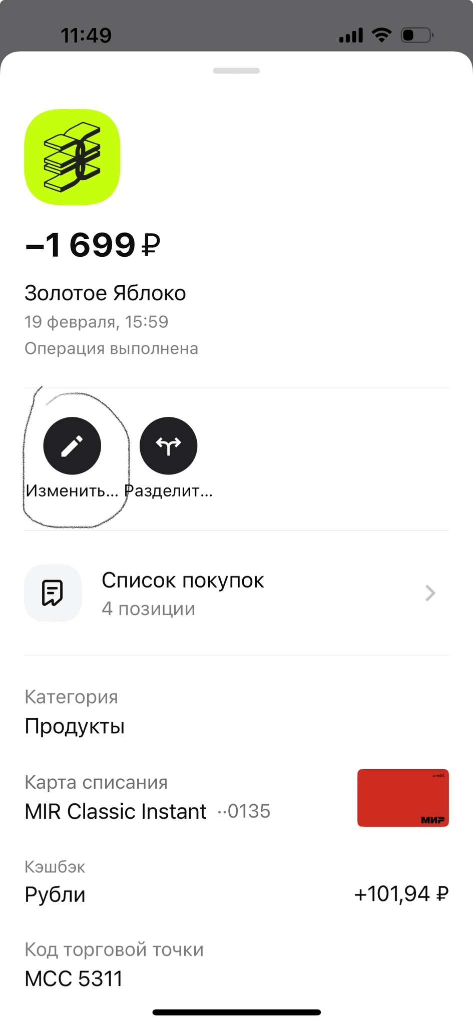 как продукты . а за неделю до этого . покупала в магазине , там категория красота встала ( кэшбек как раз 4% ) . написала им . ответ был , что не они код мсс выставляют, сами магазины . В процессе переписки , все таки исправили и код и начисление % пересчитали. Неприятный осадок . Получается постоянно отслеживать надо .
