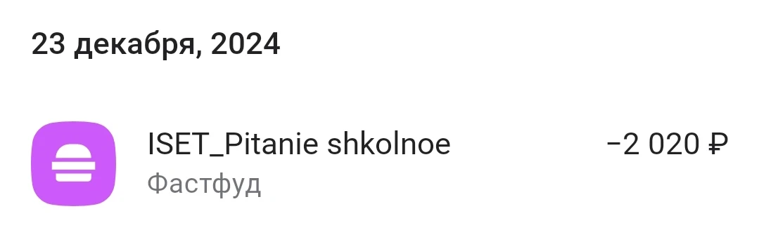 Ребенок питается в столовой, проходит как фастфуд, Альфа 5% начисляется, даже до 100 р