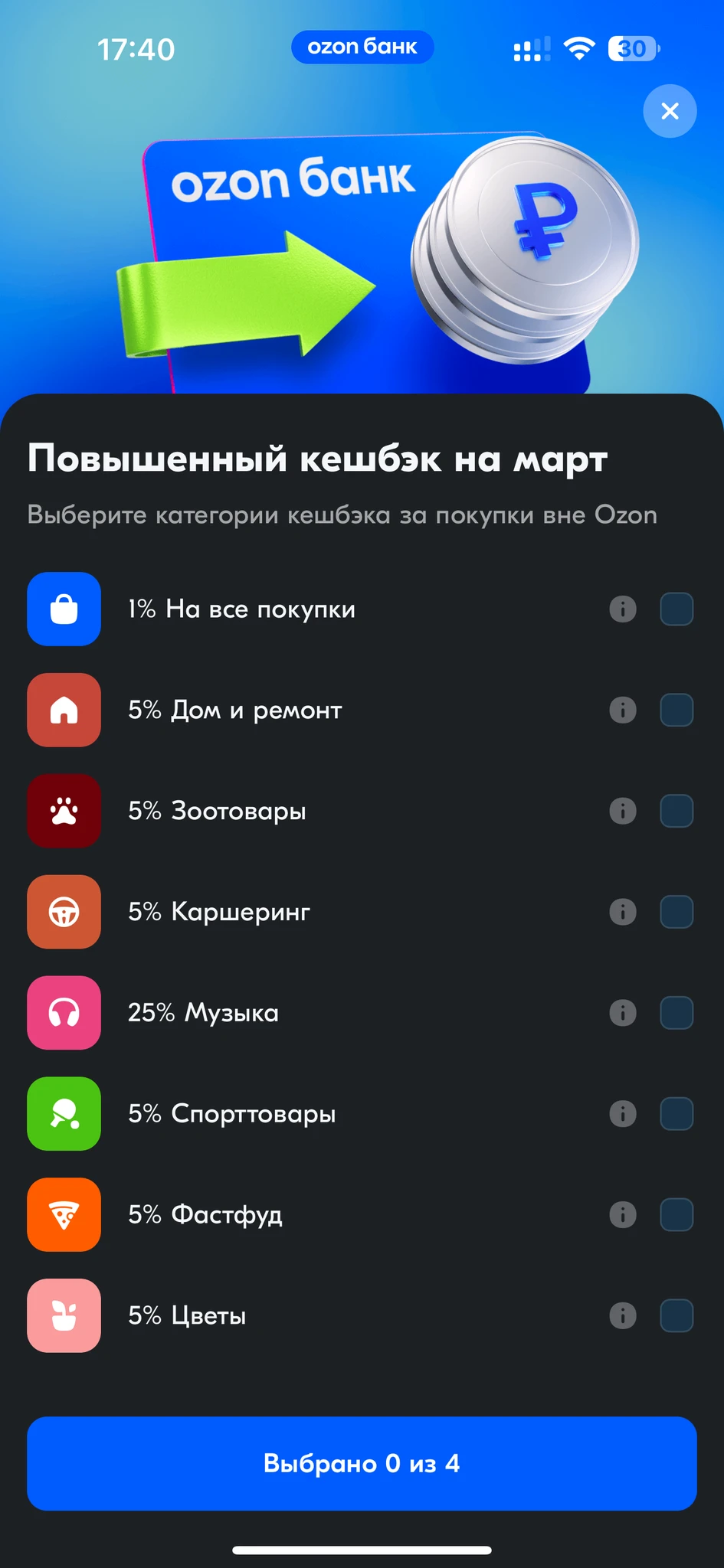 Аноним 122: А по Озону ещё ни у кого не появился кешбек на март?