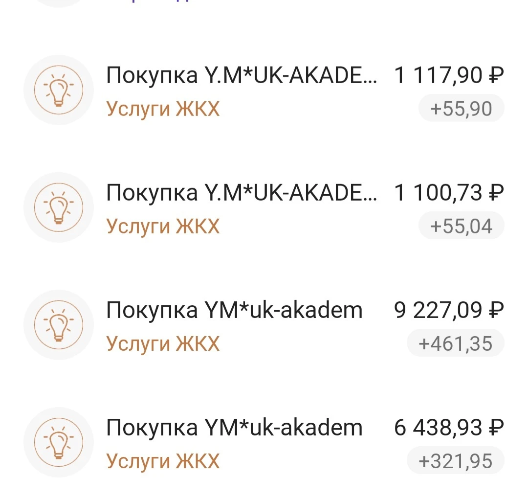 Аноним 827: Оплачиваю коммуналку за 2 квартиры и 2 паркинга около 20000₽ примерно. В месяц кешбэк по коммуналке около 1000₽. 5%