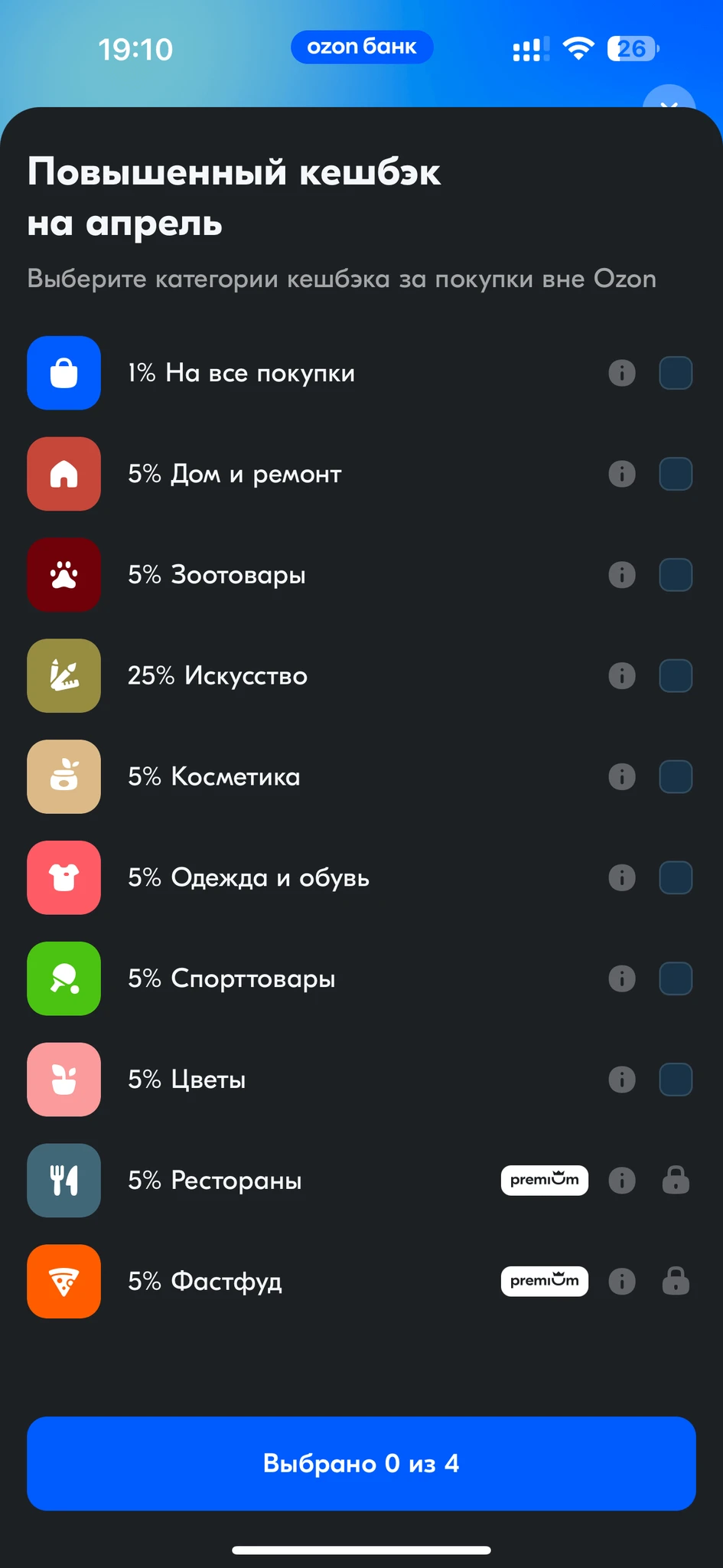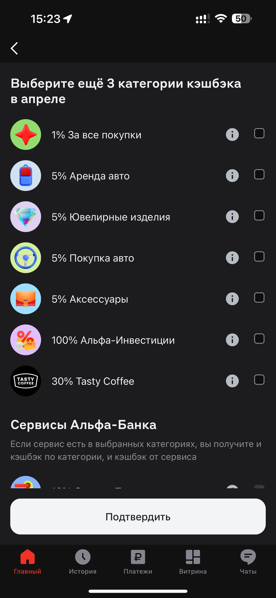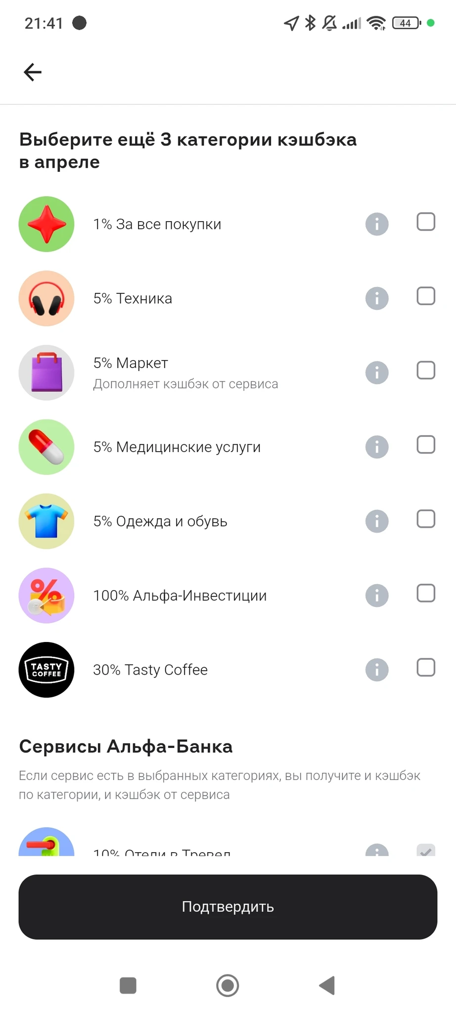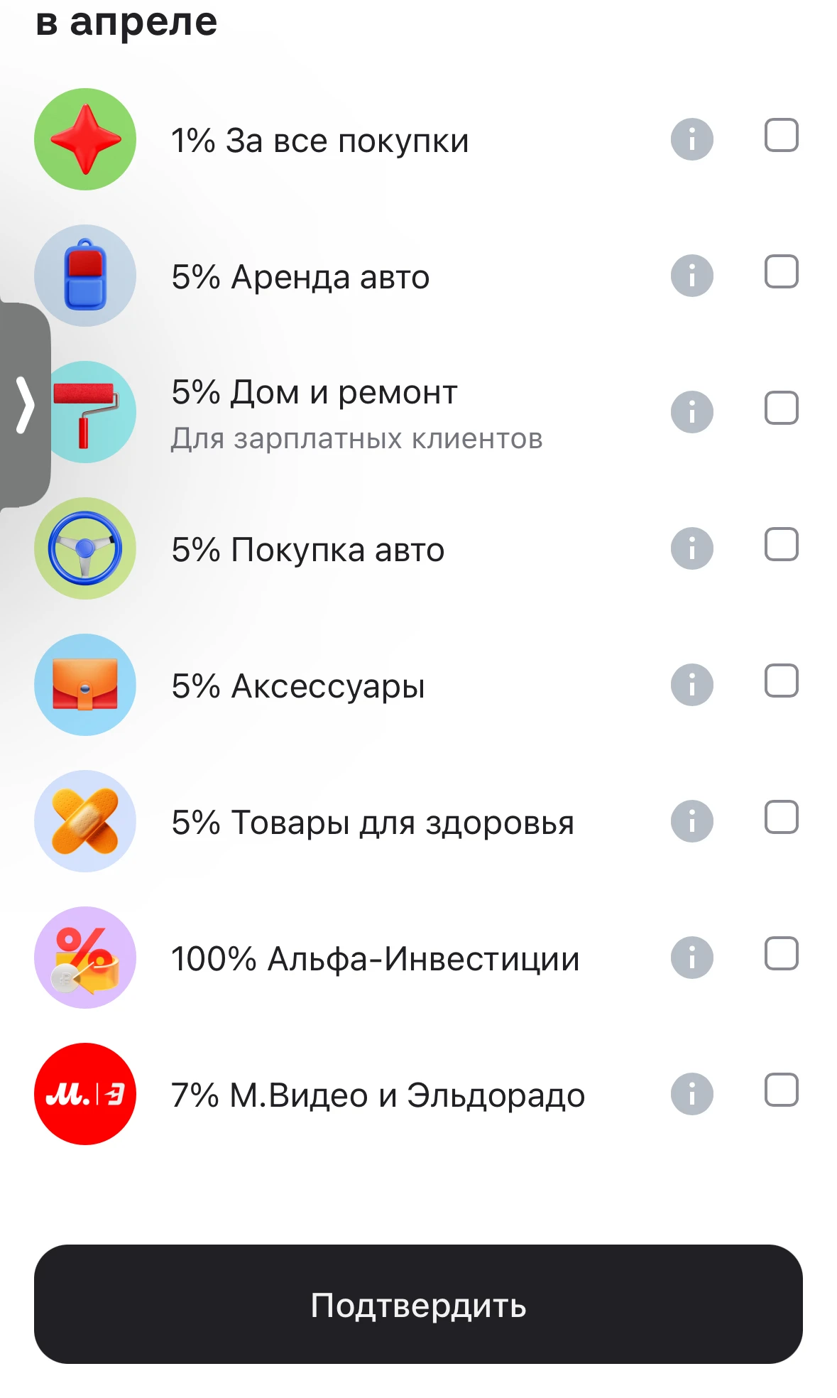 В прошлом месяце в Альфе сразу категории не выбирала, подождала несколько дней , они ещё добавили. Сейчас снова жду, пока фигня полная((