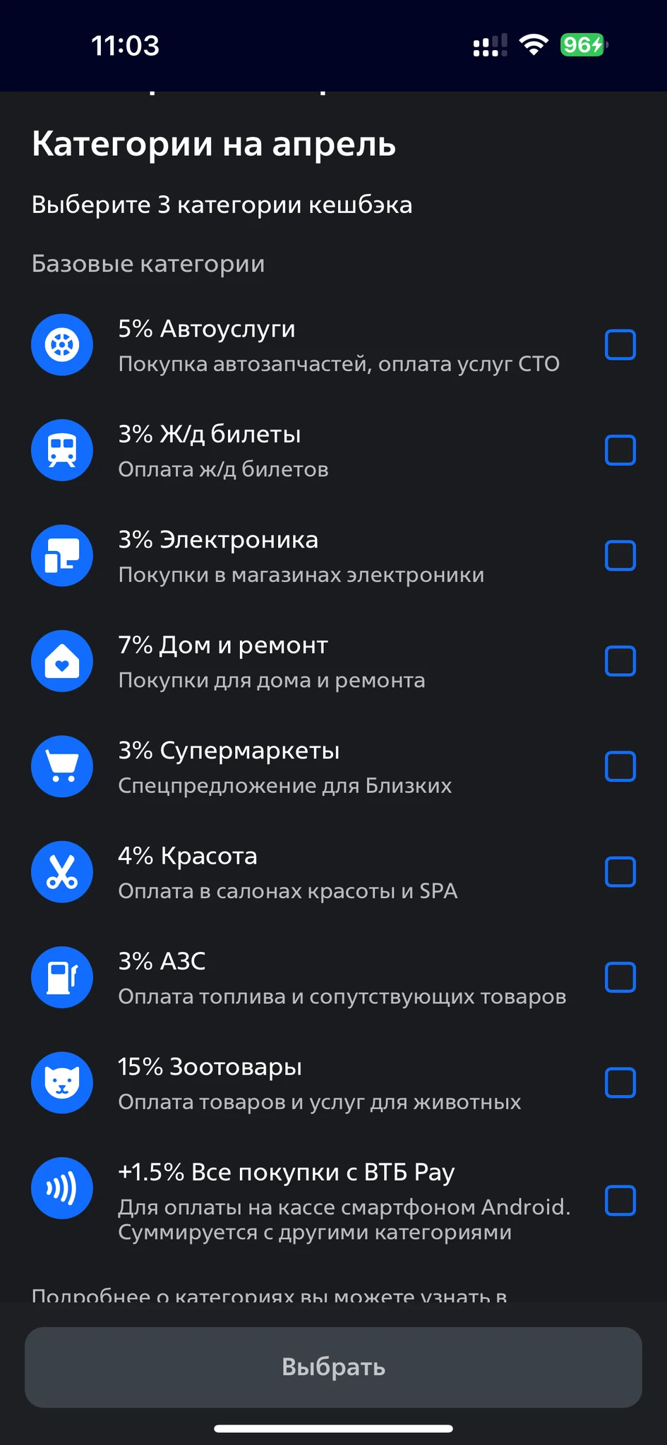 ВТБ дал категории выбирать, смотрите у себя