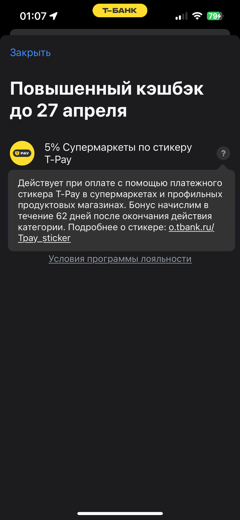 Т-банк при оплате стикером дает кешбек на продукты 5% до 27 апреля.