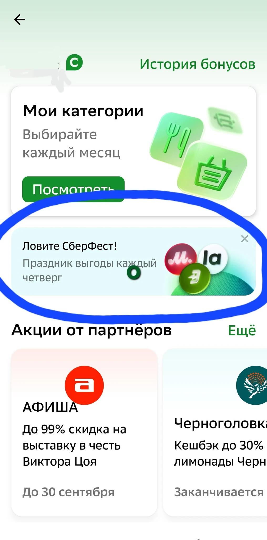 Там прямо по центру этот баннер со сберфестом