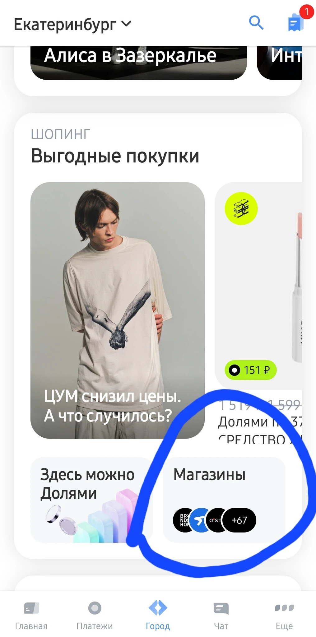 Нажимаете в приложении на город-магазины