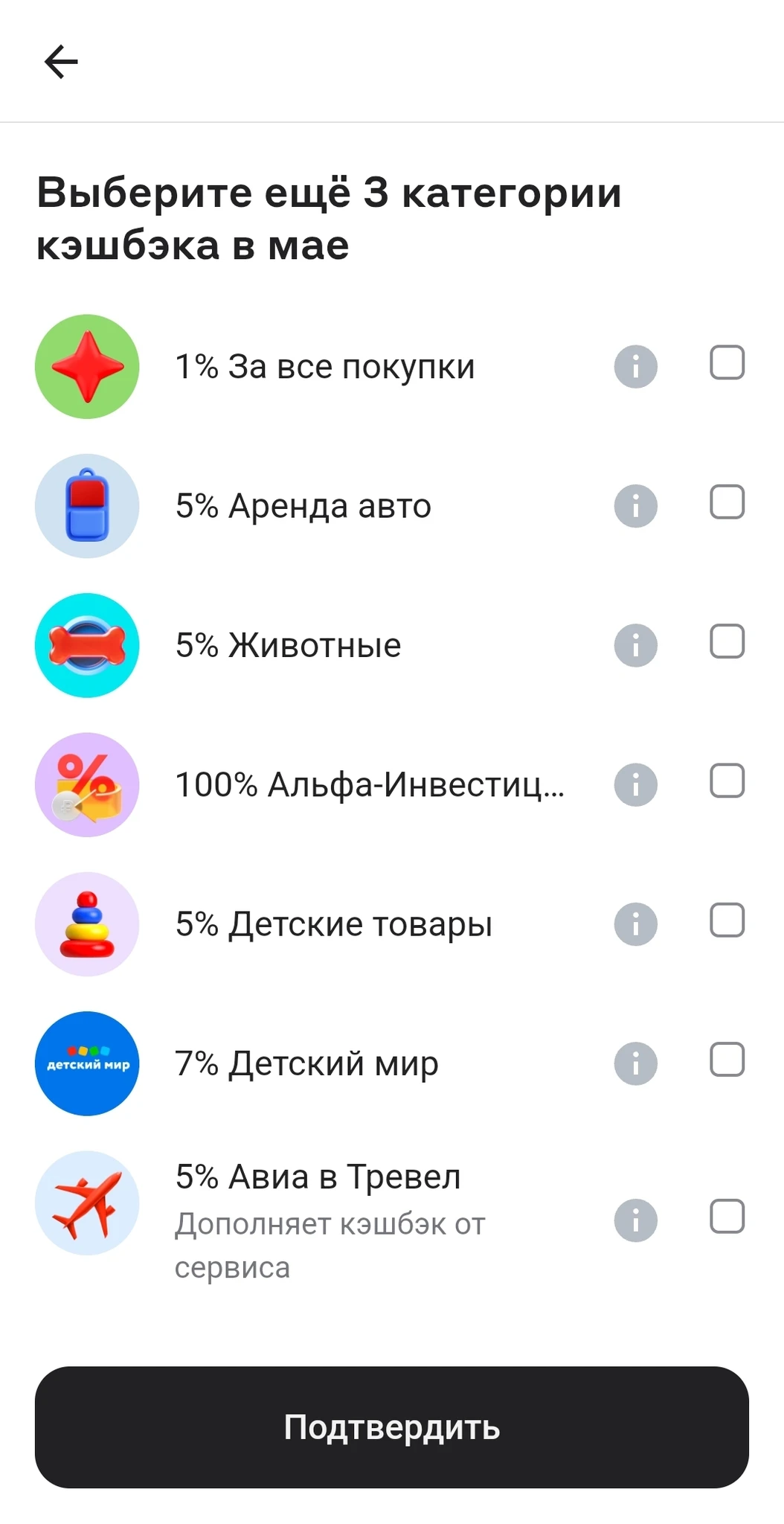 Обычный кеш бек у Альфы ну такое. Опять не из чего выбрать, кроме 5% Образования и 1% на все.