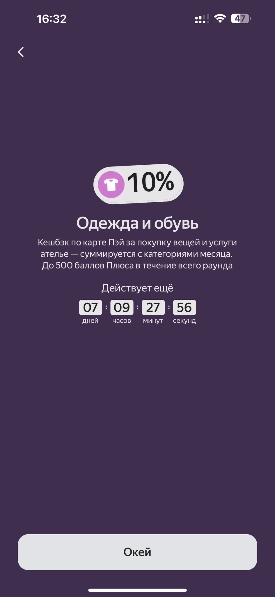 У меня тоже. А потом где смотреть эту информацию. Т.е. я закрыла окно, а где инфа теперь, что 50% на супермаркет, подскажите, пожалуйста.