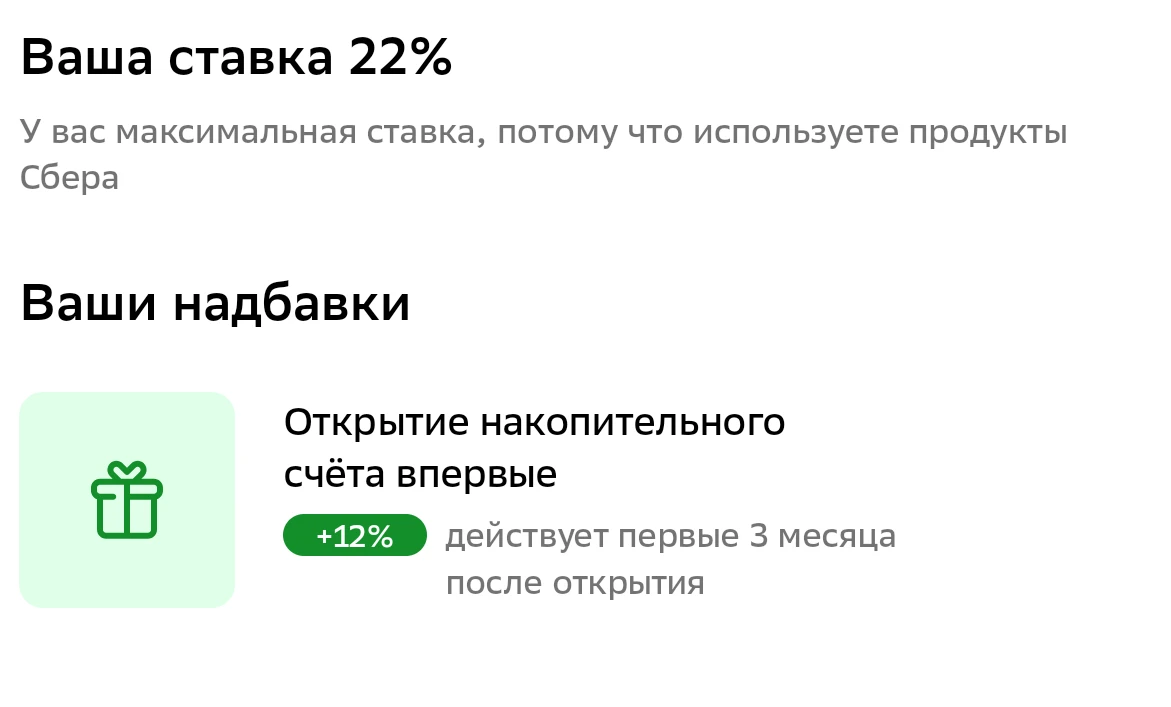 Сбер даёт приветственную ставку на 3 мес, ежедневный остаток, 22%