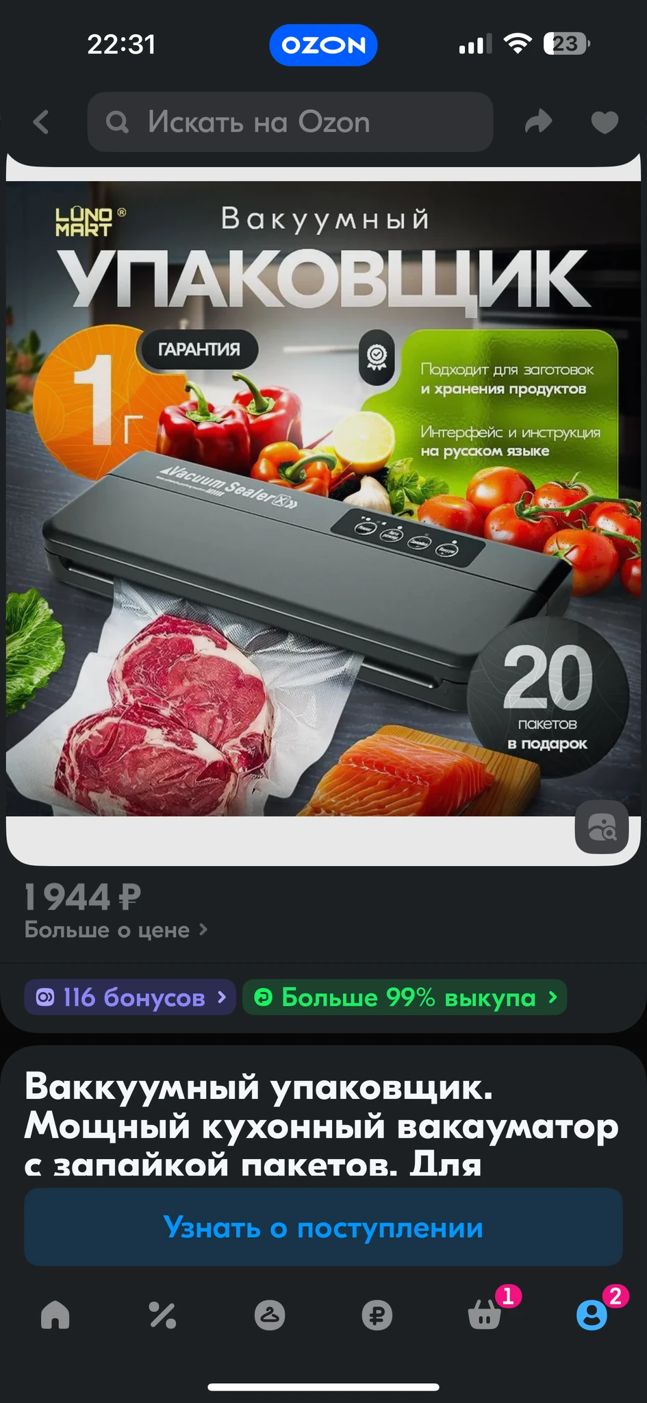 Я его выбирала еще и потому, что у него есть возможность вакуумировать продукты в спец.посуде. Решила что мне эта функция обязательно пригодится. В итоге контейнеры не купила, мне пакетов хватает. Су вид тоже делала - в моей мульте есть спец.режим.