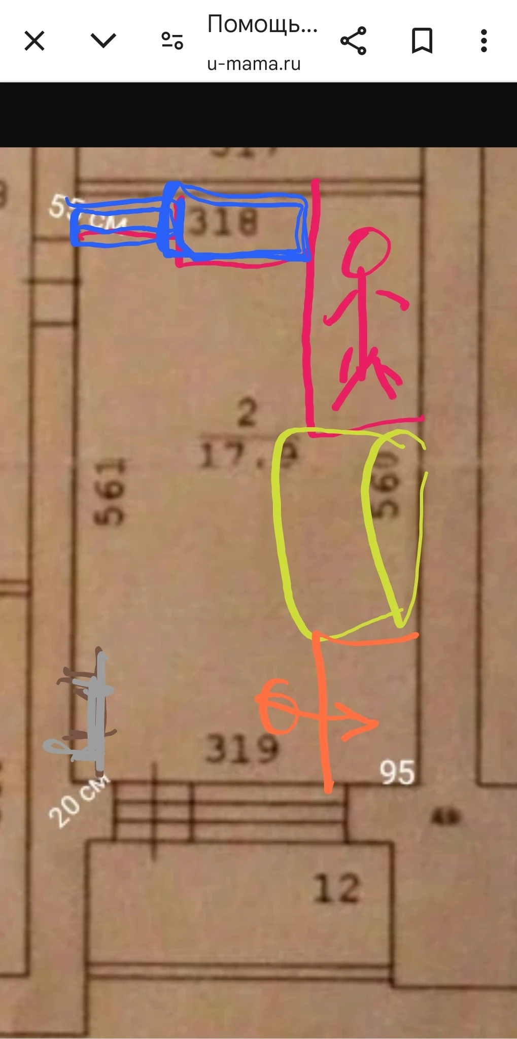 Zarazadvaraza: Поделила бы на две половины поперек. К окну спальную зону там где 95 см - рабочий стол. Стеллаж. К нему диван, к стене 55 см - комод плюс шкаф для одежды. В целом в голове у меня интересно нарисовалось.