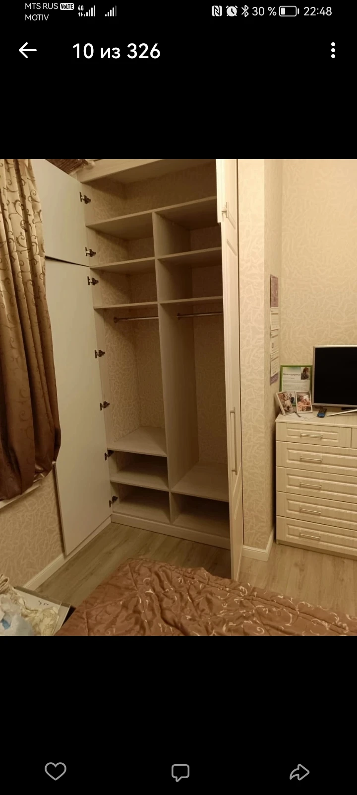 А купешка априори глубже, распашной шкаф менее глубокий, в общем, то на то и приходится. А вот, два одинаковых по цене и разных по материалам шкафа.