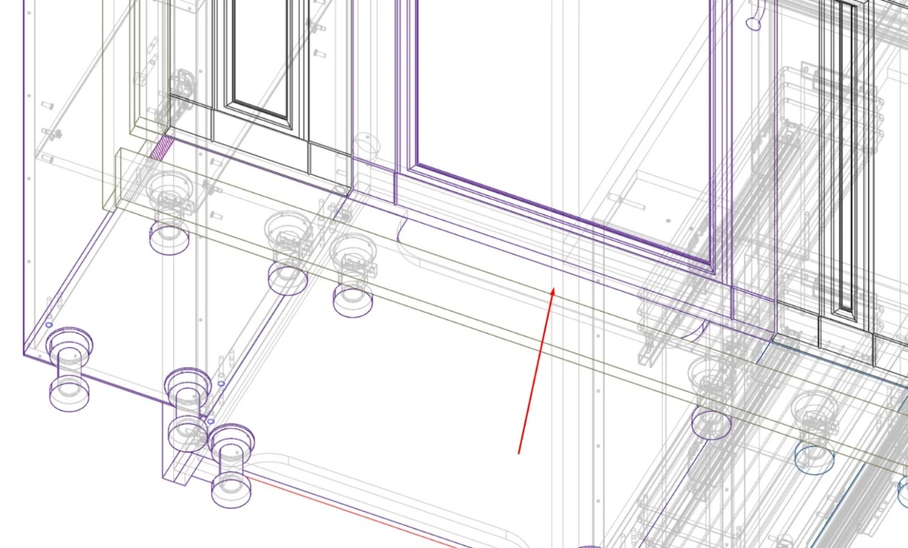 Глубина этой части гарнитура была увеличена из-за желания сохранить имеющиеся розетки - столешница здесь не 600, а 670 мм. Поэтому "Т.к. глубина увеличена, в задней и передней части сделаны вырезы"(с)