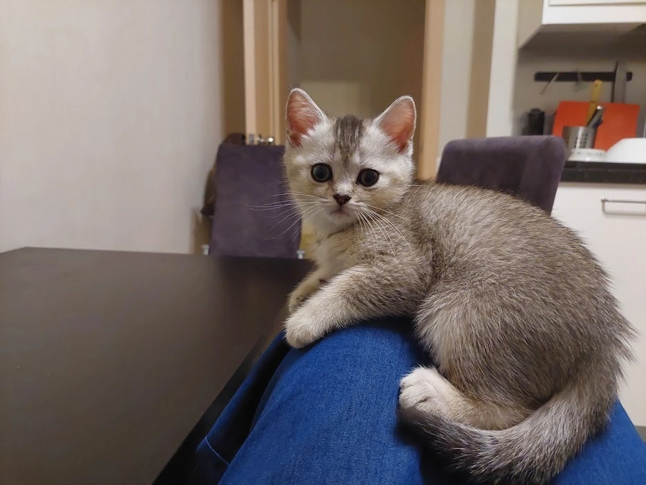 Похож на Шотландца на шиншилку) у нас похожего окраса. Сколько месяцев? Мы кормили Роял канин для Котят. Он такой мелкий, котенок хорошо его ел. Первое время муж его 7 раз в день кормил пюре Тема, потом на корм перешли.