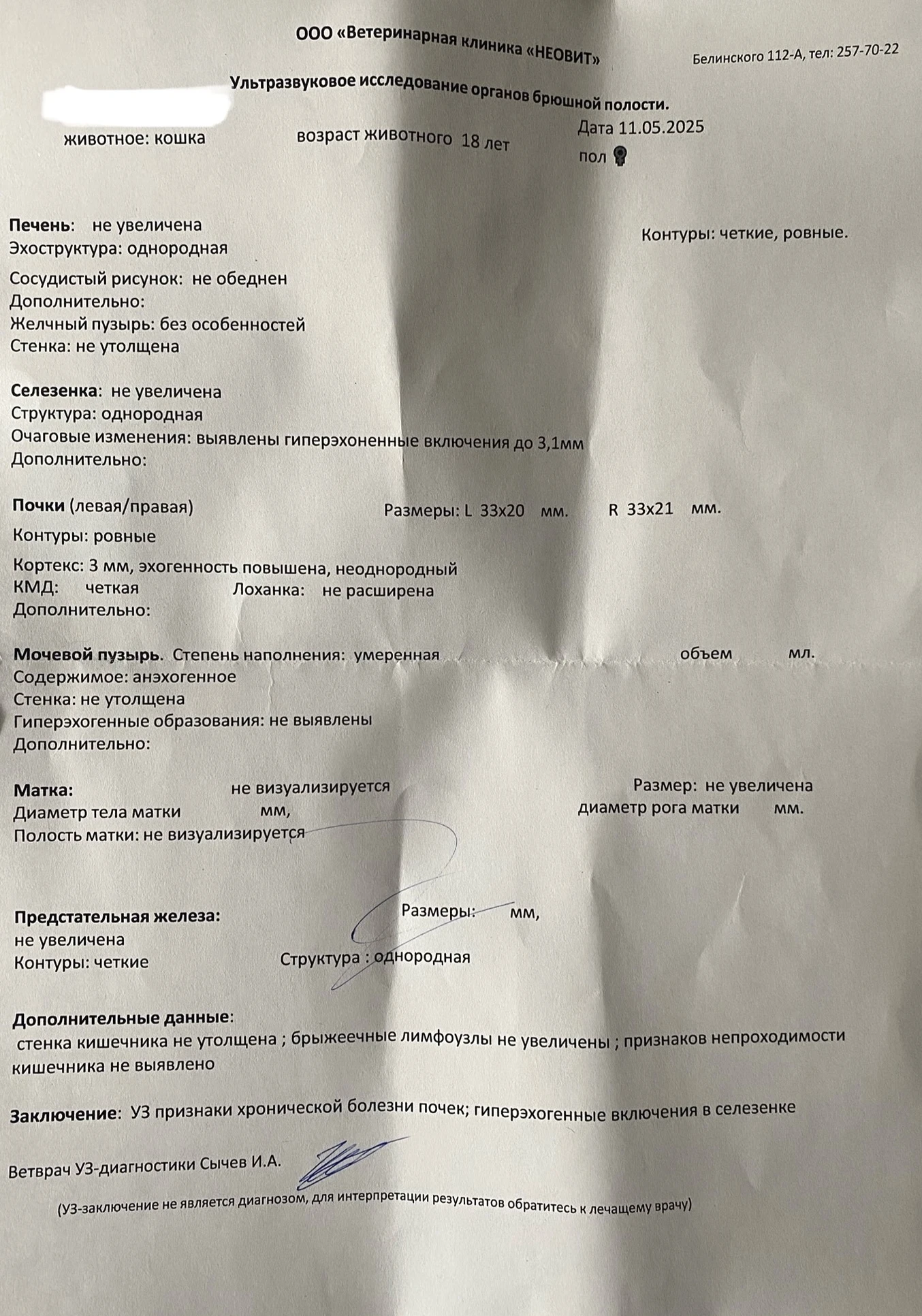 УЗИ тоже указывает почечную недостаточность. Спросила про селезенку - сказали: ну и что?! Ну и ничего!