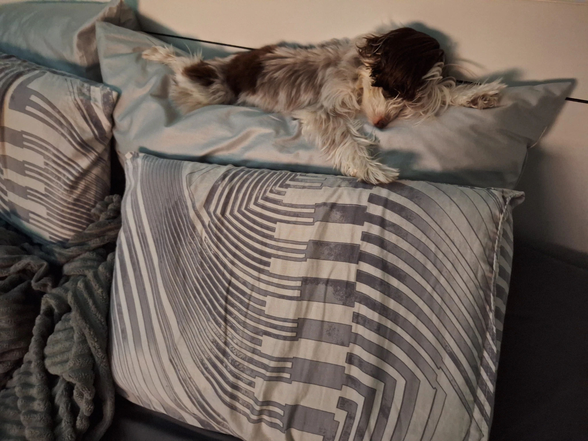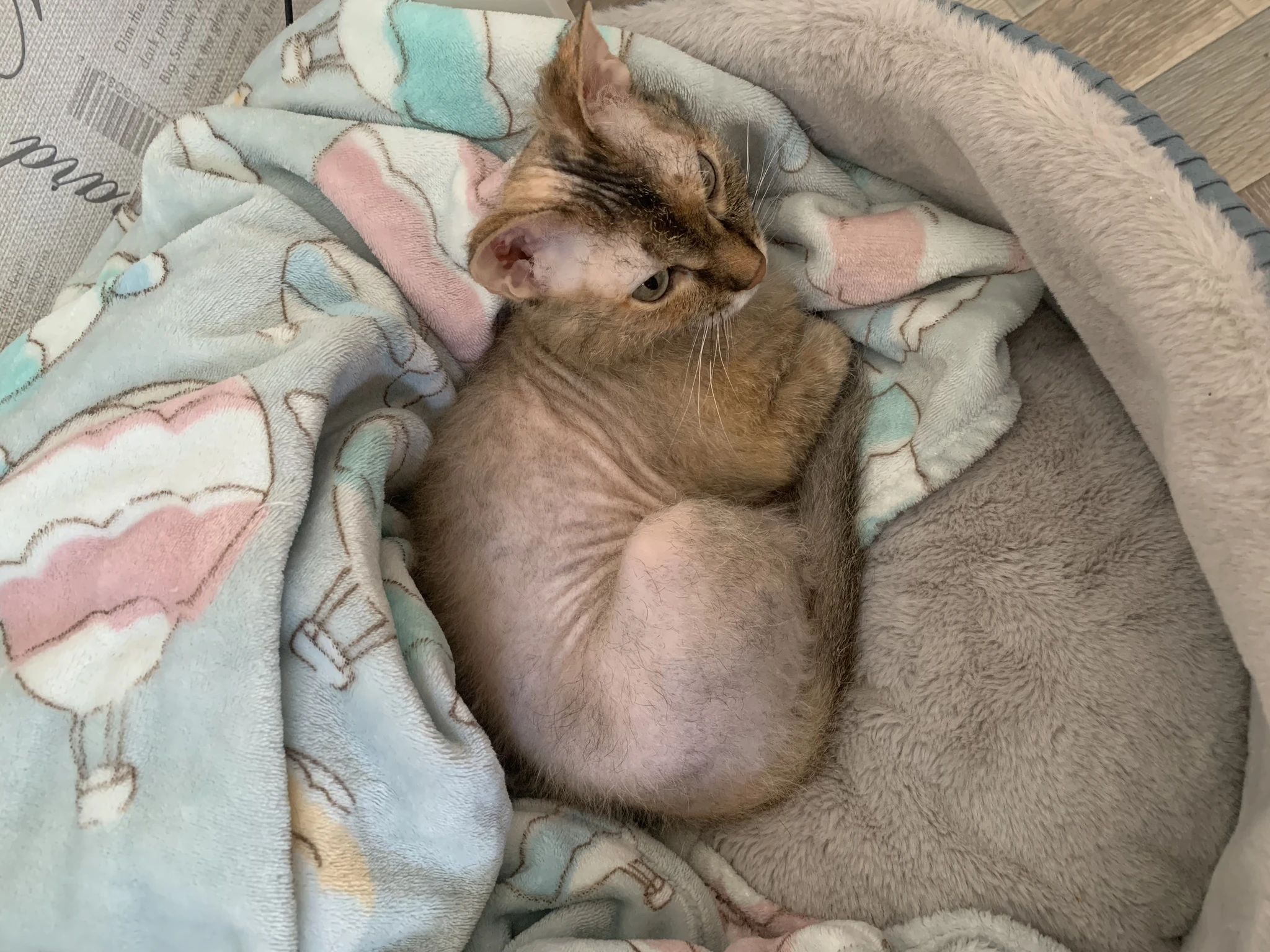 С какого-то раза подобрали ей лежанку, теперь она кайфует, не обижается больше. Сейчас покажу какая, очень мягкая и уютная оказалась.