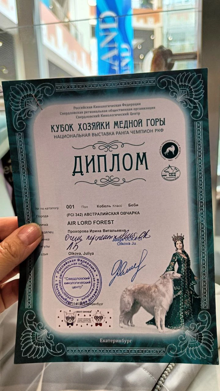 Барбос сегодня весьма успешно для дебютанта выступил на "Кубке Хозяйки Медной горы-2025" и получил "Лучшего бэби"