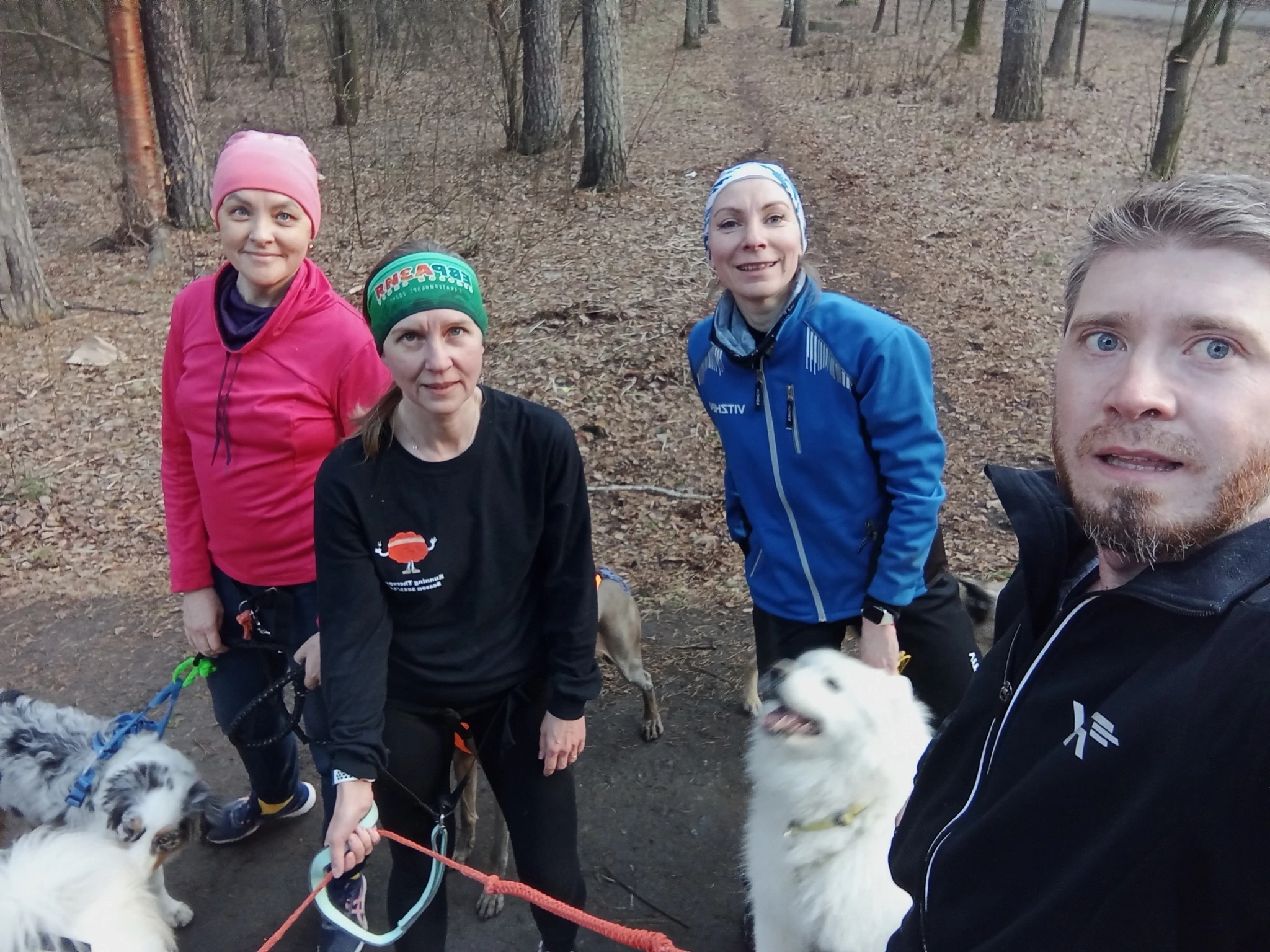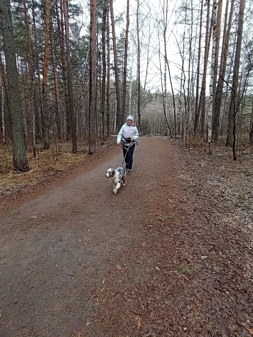 Клуб "Оставь след" радушно принял меня в свои ряды, руководитель Дима всё рассказал, объяснил, даже выдал снаряжение (шлейку, потяг, карабин, пояс). Форест сначала традиционно ошалел от количества незнакомых псов, но быстро освоился и даже бегал тренировочные интервалы вполне себе активно. Гораздо лучше меня