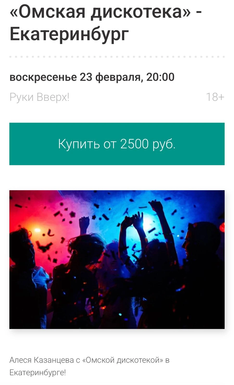 Пристрою 2 билета на Омскую дискотеку сегодня в 20:00 бар Руки Вверх