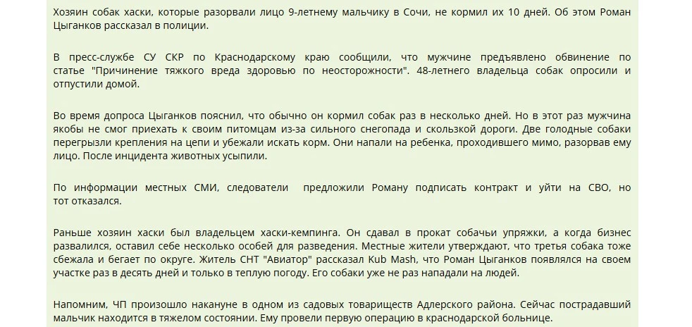 При чём тут хаски из Сочи и наш местный питомник, где живут собаки, которые получают необходимую физическую нагрузку и не сидят на цепи?