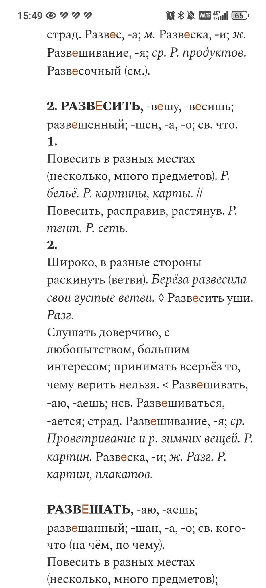 Вы никогда не открывали словарь и не знаете как он оформляется? Это формы слова, просто повторяющуюся часть заменяют дефисом: развешу, развесишь там имеется в виду.