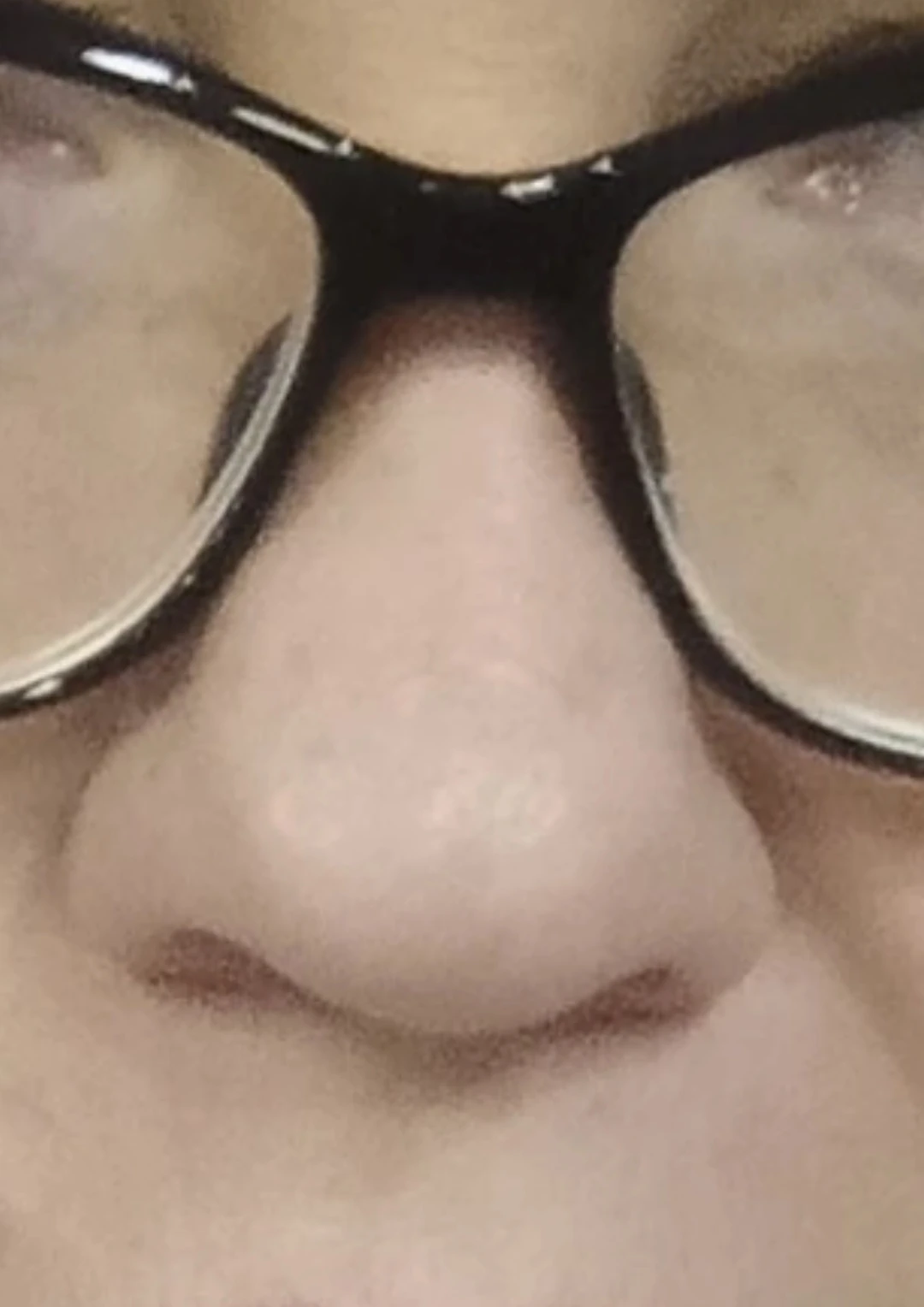 Увеличьте своё фото. Видите, лицо, будто пудрой засыпано и не растушевано)