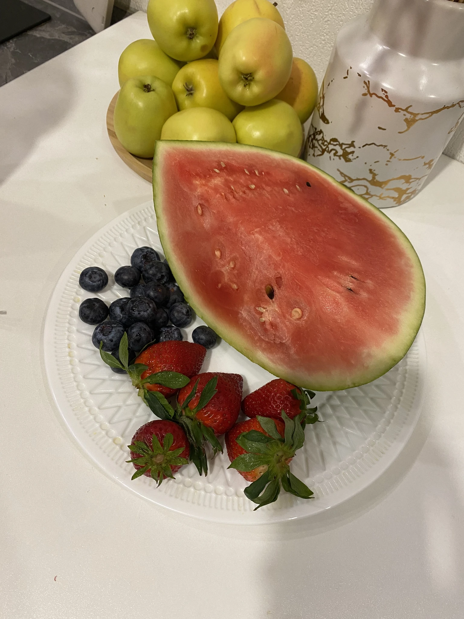 Покупаю по настроению голубику, викторию, ежевику, арбуз. Сегодня как раз не смогла пройти мимо арбуза, очень вкусный.
