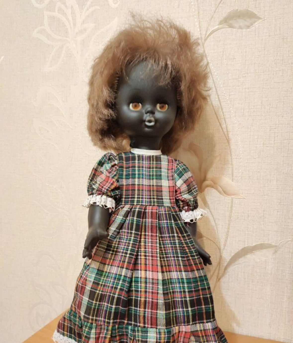 Короче , я однажды гуляла по Верхней Сысерти и во дворе многоквартирного дома в песочнице в грязи увидела вот такую куклу. В оригинальном платье! И не могла ее не забрать видно было, что она ничья