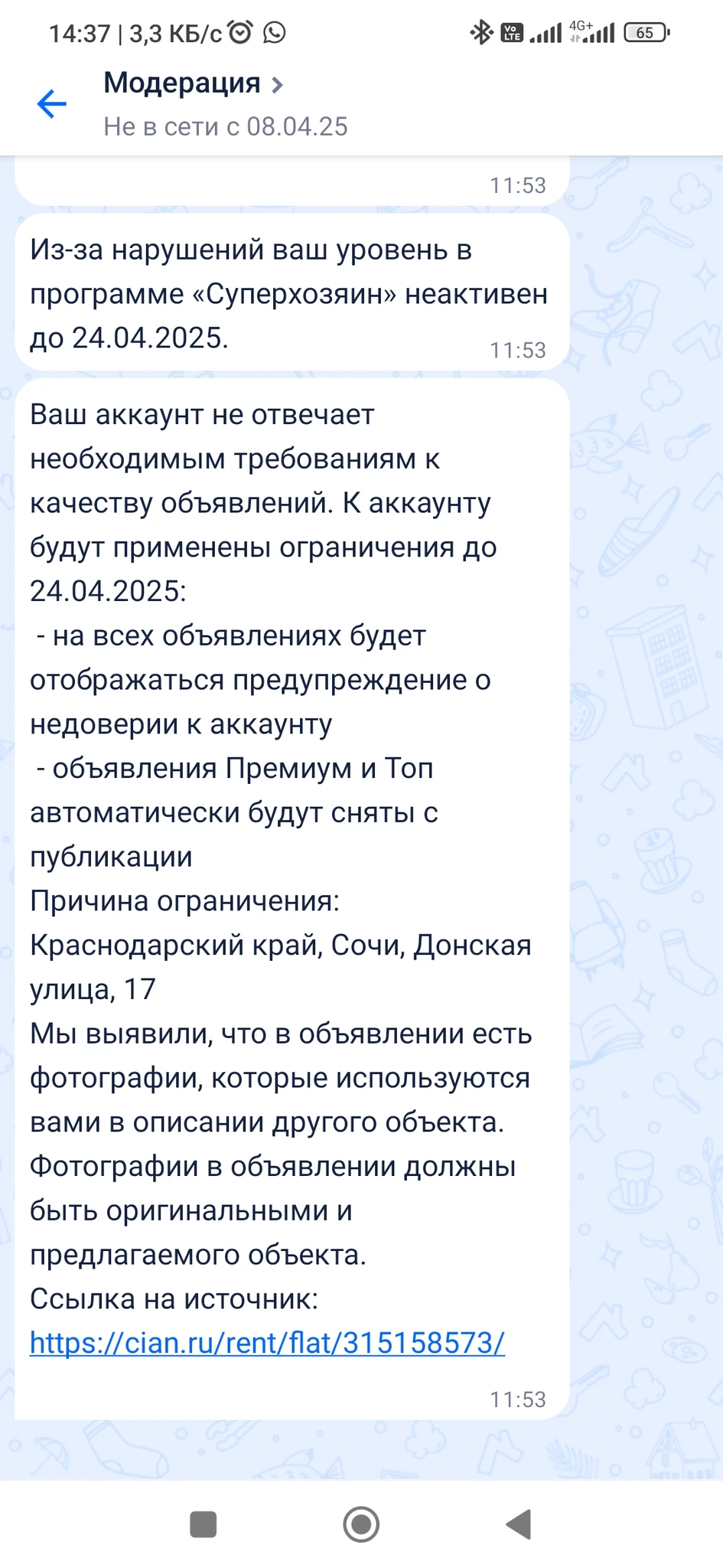 Почему на циан заблокировали моё объявление.