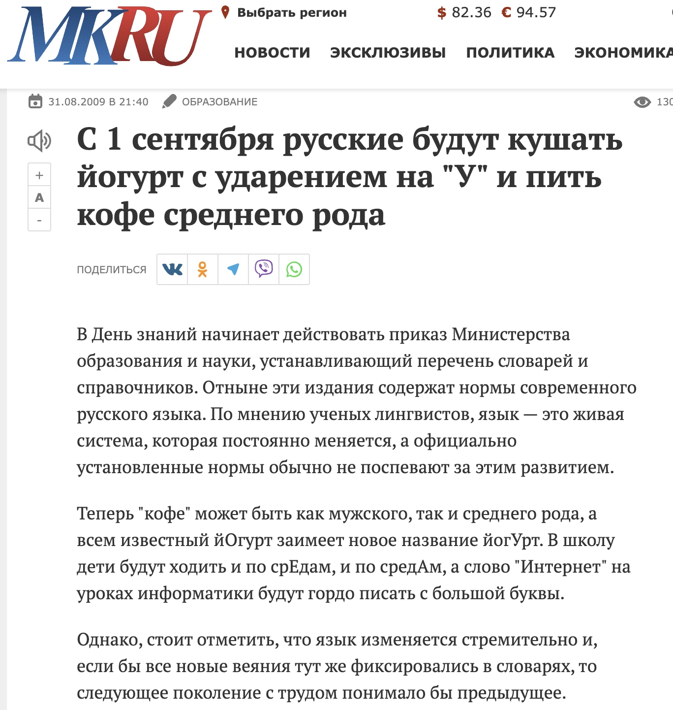 Аноним 84: ударением на слово "звонит". Почему сейчас налево и направо говорят "звОнит", а не "звонИт"? А ведь в этом ничего случайного нет. Я как специалист знаю, что за этим вариантом ("ЗвОнит". — Прим. ред.) будущее, потому что все глаголы на "ить" в последние 100 лет начали движение от того ударения, которое у них было на окончании, к ударению на основу слова", —