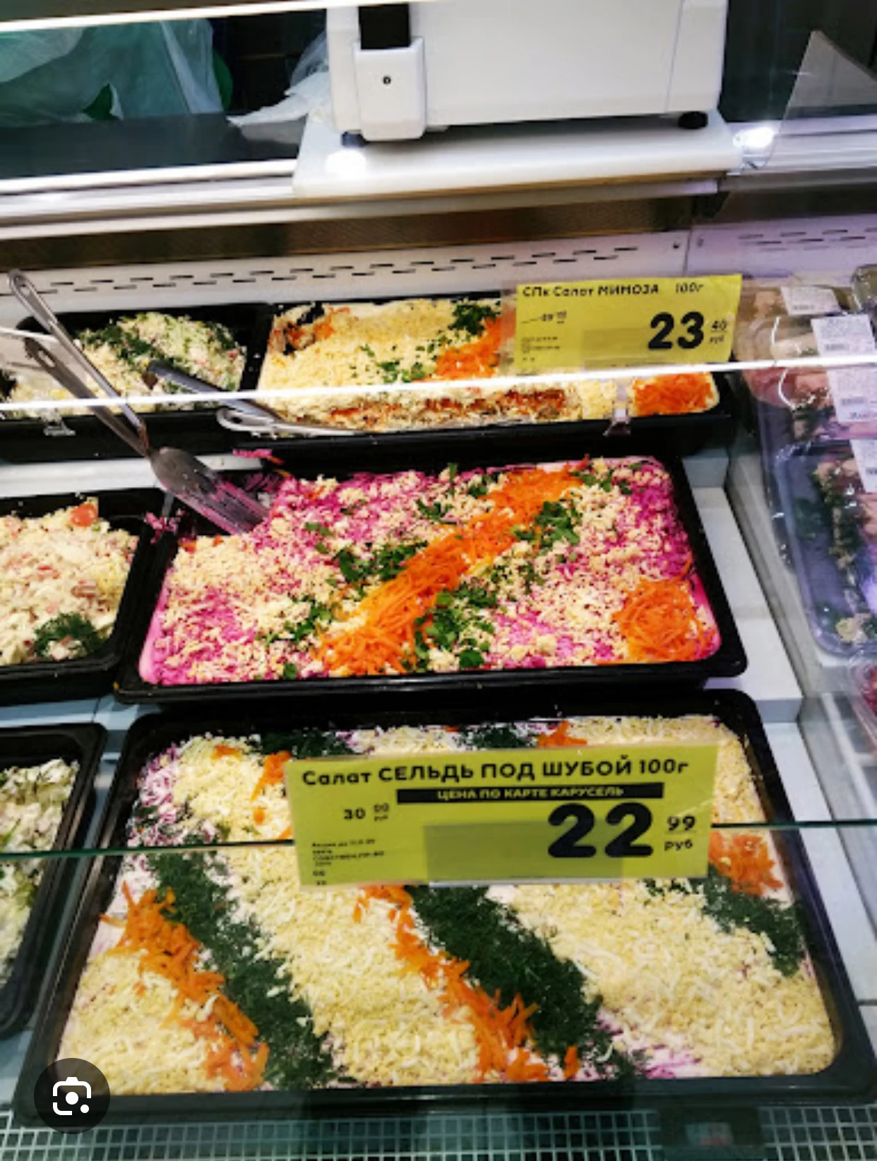 Сама беру салаты. Но тут другая проблема. Их ем только я дома. А готовить себе порцию селёдки под шубой так себе вариант. Вот и балую себя.